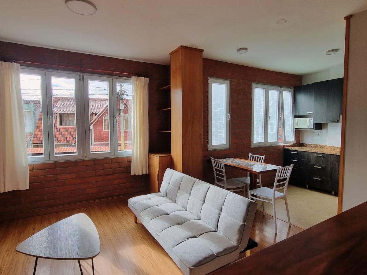 Hermoso departamento con elegantes acabados y ventilación. Ventanales con luz natural. Excelente ubicación a 5 minutos del centro cerca de entidades bancarias, gasolineras, centros comerciales y líneas de bus. Cuenta con parqueadero dentro de la casa, techado.