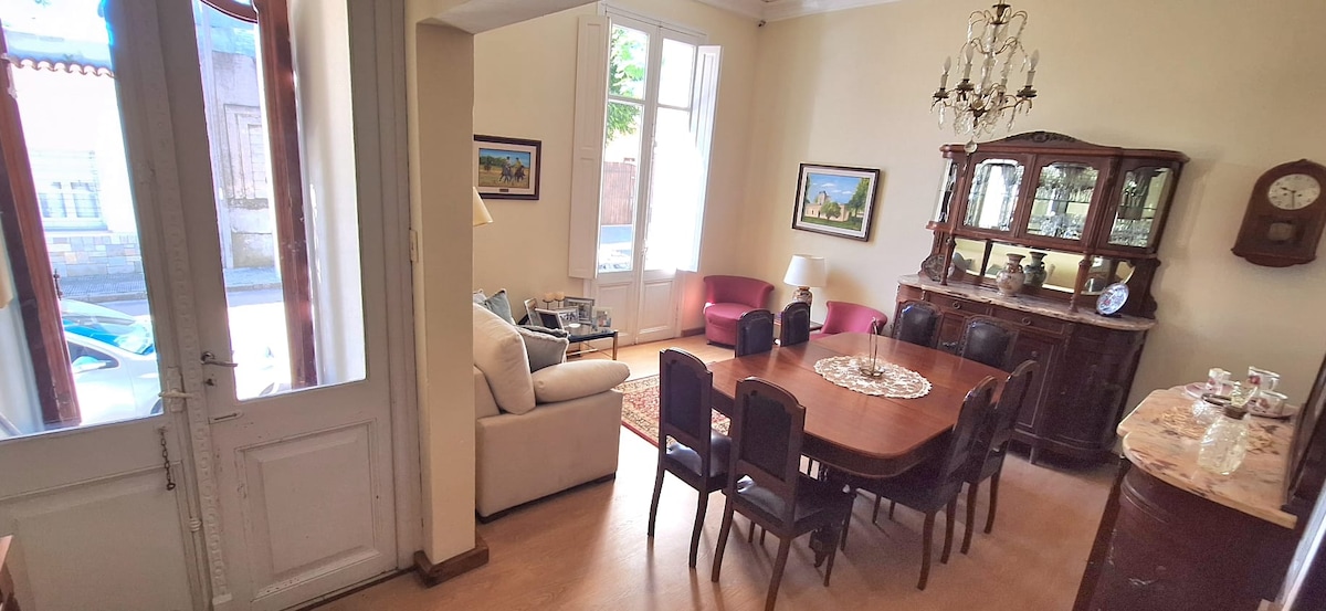 Elije esta propiedad por su excelente ubicacion , a 2 cuadras de la terminal de omnibus y 5 del centro .Es una casa amplia reciclada , que ofrece mucha comodidad , pueden ser dos matrimonios con hijos .Cuenta con dos dormitorios con cama matrimonial , uno con 2 camas individuales y otro con una cama individual . En total pueden hospedarse hasta 7 personas. Cuenta con 2 baños completos , cocina con heladera , microondas , cocina a gas, estar y living indendientes. ropa de cama y toallas inc.