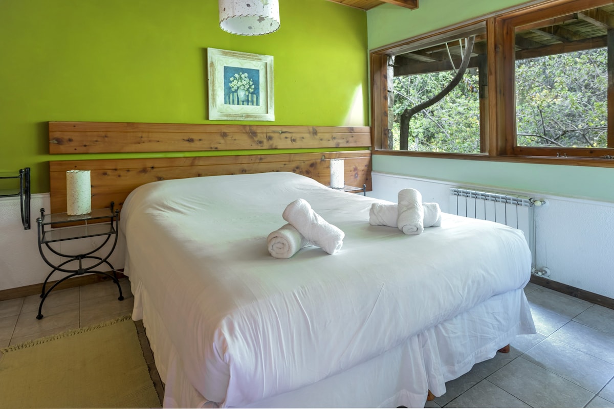 Encantador Apartamento moderno en la montaña! Cuenta con una habitación principal con cama King Size, tv y escritorio, baño en suite con ducha escocesa. También con una habitación con dos camas twin o matrimonial y un segundo baño con hidromasaje. Living con dos sofá-cama. Comedor para ocho personas, hogar a leña, TV y DVD en la sala de estar. Cocina totalmente equipada con horno, microondas, lavavajillas, heladera con freezer, tostadora y cafetera.