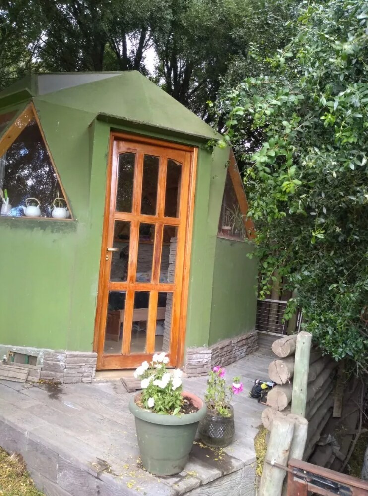 Es una cúpula de 80 M2. Amplio espacio de 8 metros de diámetro,muy luminoso, con grandes ventanales, una cama de dos plazas y una de una plaza. Entrepiso con un pequeño escritorio. Esta construcción fue realizada artesanalmente por un escultor local. El espacio es el interior de una escultura,lo que permite tener una experiencia distinta a lo convencional. Los muebles y los objetos son únicos realizados especialmente para el lugar.