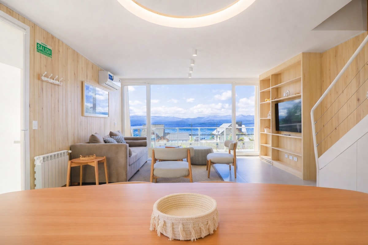 Bienvenido a un alojamiento único, donde el diseño moderno, la luminosidad natural y las vistas escénicas panorámicas al Lago Nahuel Huapi, montañas y bosque, se combinan para crear una experiencia de estadía excepcional. Este departamento de estilo contemporáneo y minimalista, está ubicado dentro de un complejo arquitectónico exclusivo y sustentable, ofreciendo ambientes amplios, ventanales de piso a techo que llenan cada espacio de luz y naturaleza pura.