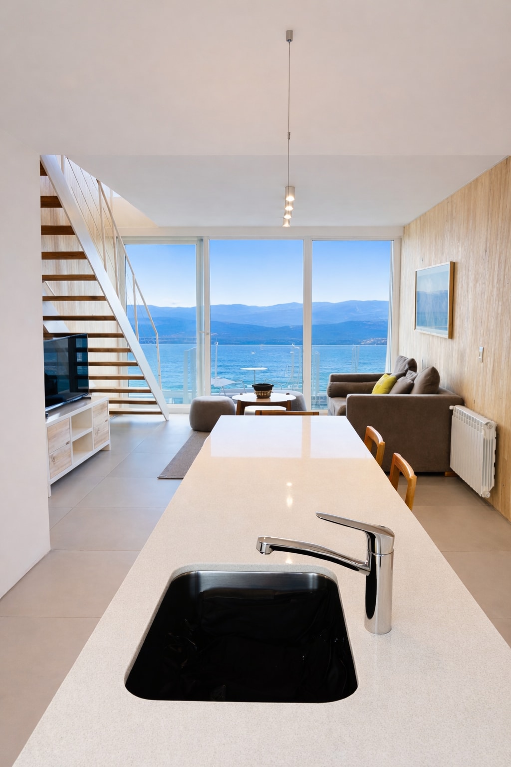 带泳池和电影院的湖景房