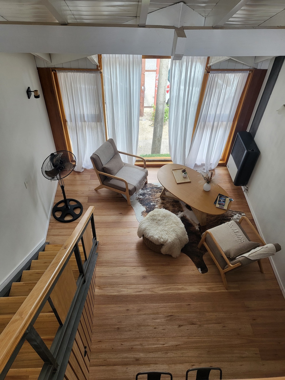 Loft de arquitectura moderna, con espacios integrados, amplios y grandes ventanales que permiten disfrutar desde el interior la imponente naturaleza. Estar, cocina y comedor integrados, cocina totalmente equipada para 5 personas En el estar, hay un futón que se transforma en cama de 2 plazas más una cama individual. El entrepiso cuenta con un sommier de dos plazas .