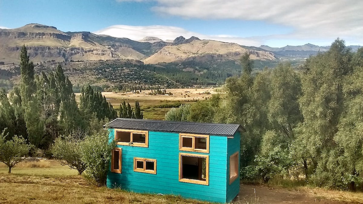Luminosa tiny house con espectaculares vistas del Chapelco y cerro Corona a 10 minutos del centro. La casita está emplazada en una propiedad de 4 hectáreas con manzanos, ciruelos, nogales, frambuesales y bosques de maitenes. Se accede por asfalto hasta 500 metros de la propiedad. Tiene cocina completa integrada. Cocina a gas de 4 hornallas con horno y heladera grande con freezer. Baño completo con ducha. Dormitorio en entrepiso con cama queen y dos camas de una plaza.
