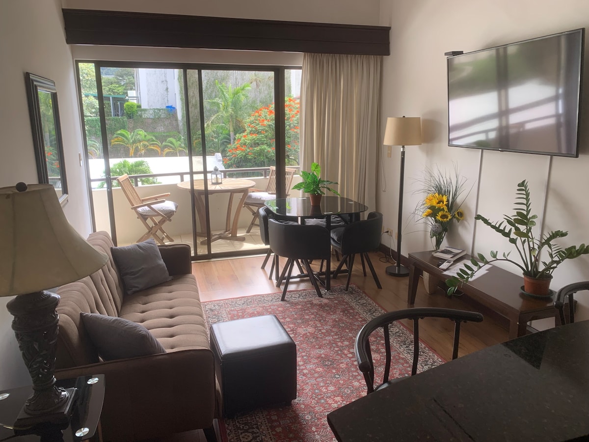 Increíble apartamento rediseñado por el Arquitecto Andrés Brenes, único en su tipo. Ubicado en el piso 21 con muebles de lujo y asombrosas vistas . Amplio espacio de sala, cocina y habitación. Zona muy transitable, cerca de parques, centros comerciales y restaurantes. Aeropuerto: A 16 km, serían 35 min aproximadamente, dependiendo del tráfico. Parque metropolitano La Sabana: 1km Parqueo Privado No A/C