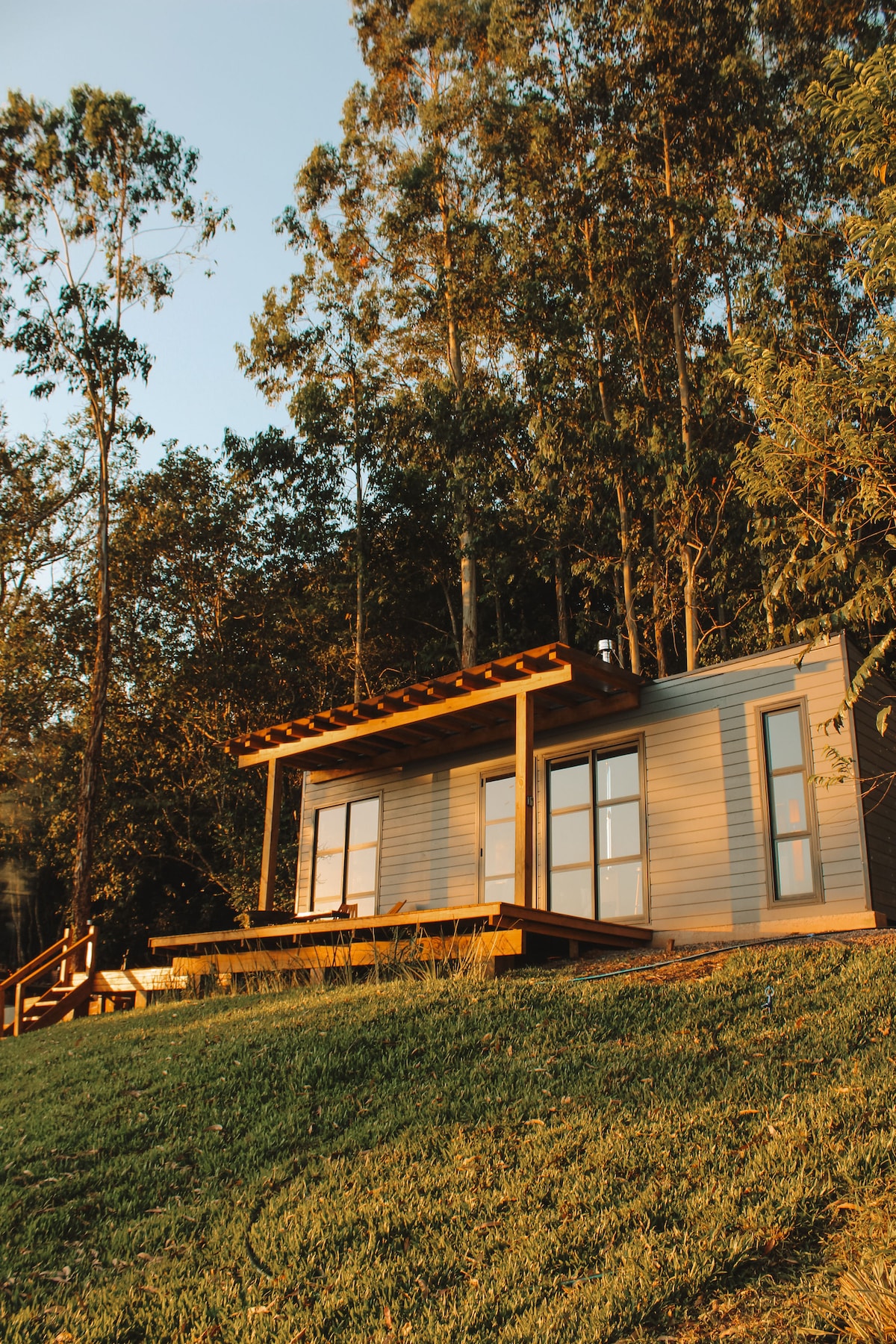 O Refúgio Montevale foi criado especialmente para quem procura descanso e tranquilidade. Localizado em uma propriedade privada no interior de Vale Verde-RS, o módulo possui cozinha completa, ar condicionado, banheira de imersão, lareira, fogo de chão, churrasqueira tudo pensado para o seu descanso ser completo. Um café da manhã pode ser solicitado com um custo adicional. Somos pet friendly. Prepare-se para uma estadia deliciosa e aconchegante.