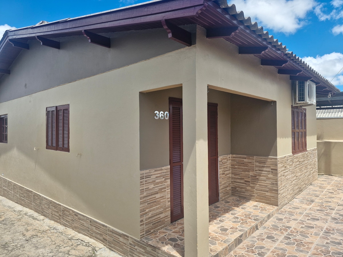 Casa inteira, pátio dos fundos compartilhado. Local limpo e aconchegante, Ideal para passar a noite durante sua viagem da Argentina para o litoral de Santa Catarina. Espaço seguro, com piscina, ar condicionado nos dormitórios e também na sala de estar. Localização: bairro familiar e tranquilo, a cerca de 2 minutos em carro do entroncamento da BR 290 com a BR 471.