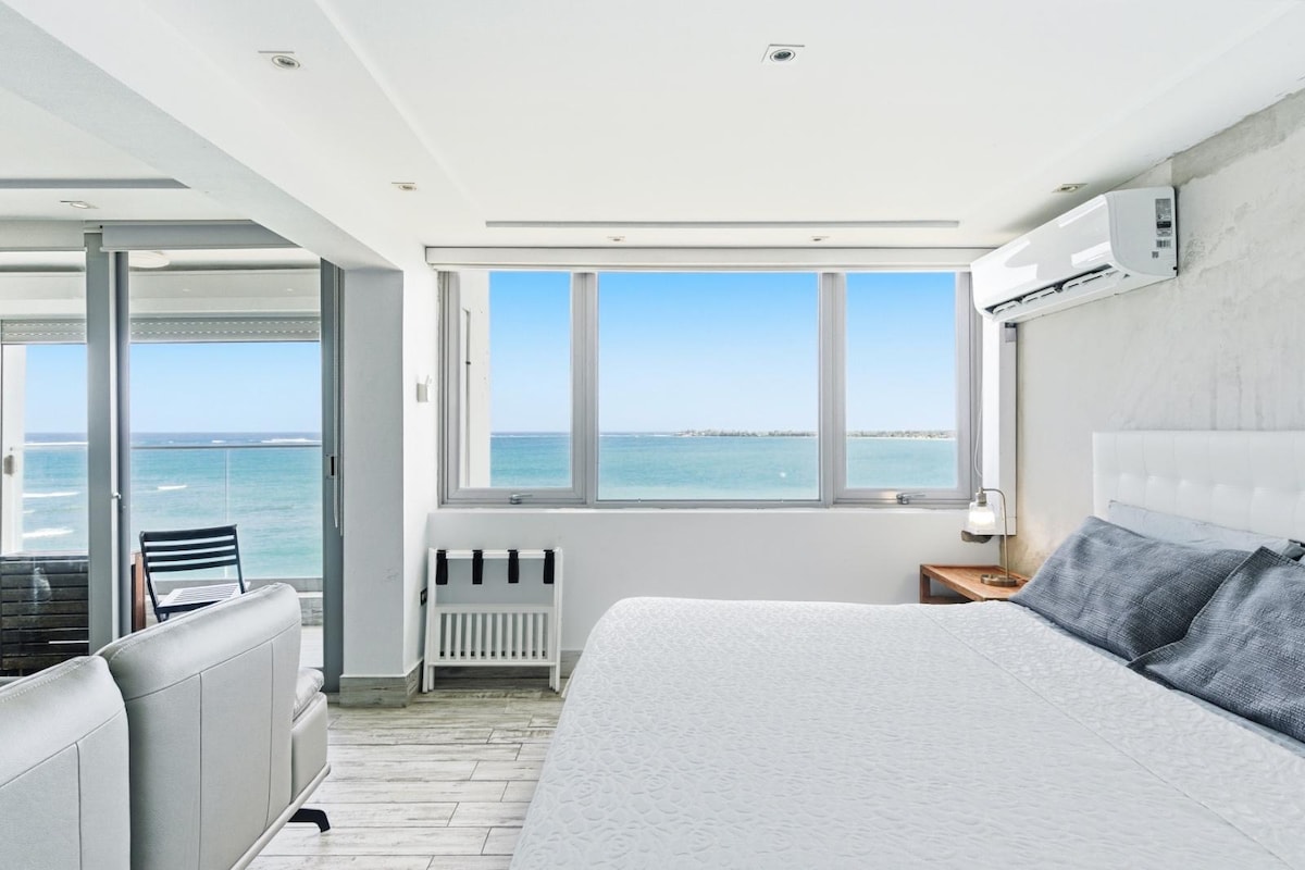 Million-dollar view—BOOK NOW! Proudly 100% Puerto Rican (and Veteran) owned. 🇵🇷 15th-floor studio w/ stunning sunsets. 5 min from SJU airport, <1 min walk from lobby to the beach! ✅ 1 free garage parking 🅿️ ✅ Self check-in ANYTIME after 3 PM ✅ Free luggage storage ✅ 24/7 supermarket 10-min walk ✅ Lobby café & bar 🧺 Paid laundry in basement. ❌ No pool ❌ No early check-in/out