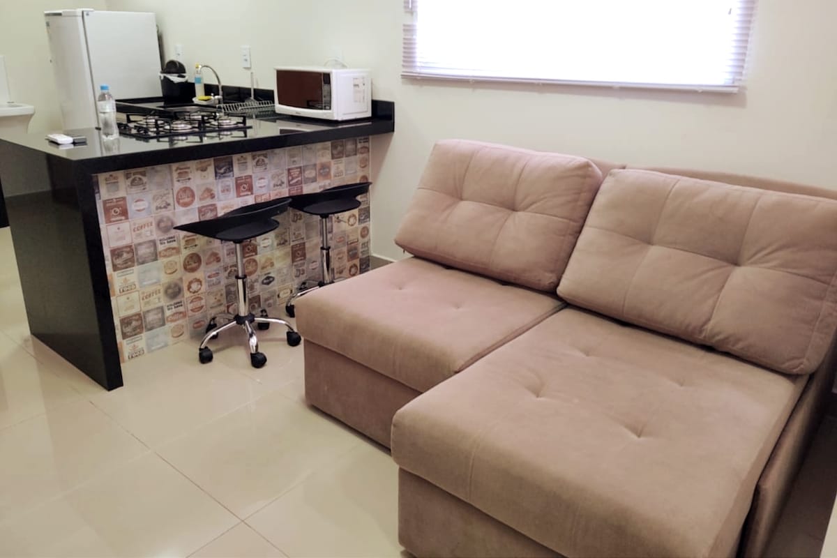 Apartamento de 1 dormitório com Wi-Fi e ar condicionado, fica no primeiro andar, com todos os itens necessários para uma excelente estadia. Bairro tranquilo com comércio local (padaria, mercado, farmácia, hortifruti, espetinhos, sorveteria), Pista de caminhada e ponto de ônibus bastante próximo. O Plaza shopping fica a 500 metros e o Hospital de Base 1500 metros. ✅ Forneço roupas de cama ❌ Não forneço toalhas de banho