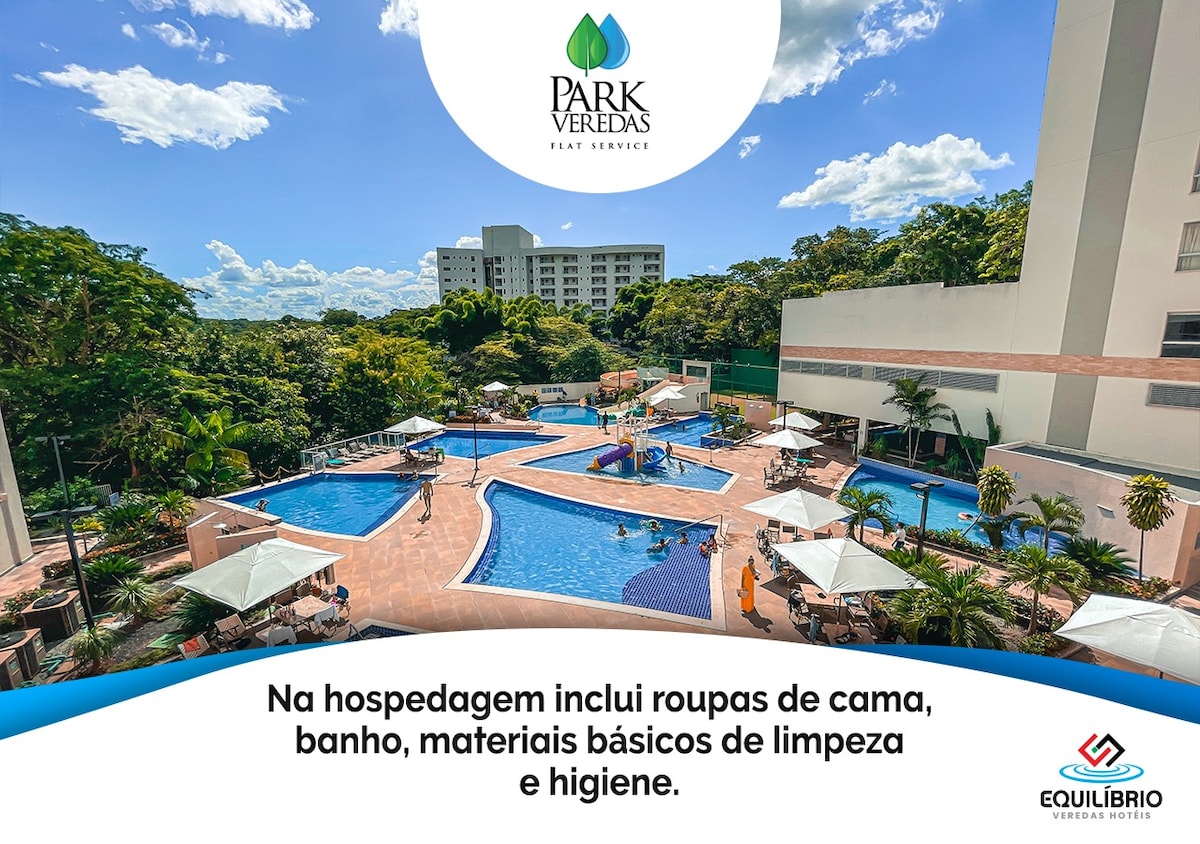 O mais completo flat do Park Veredas, com uma vista linda, muita paz e tranquilidade! Lugar ideal para relaxar e se divertir com a família e com os amigos, o Park Veredas conta com inúmeras piscinas de água quente e natural, e uma área de lazer bem completa... O rio quente passando no fundo do hotel, com acesso exclusivo aos nossos hóspedes, sem custo extra, é um show à parte! Sem contar a excelente localização, com fácil acesso a bares, restaurantes e padarias. O Hot Park fica a 5 minutos.