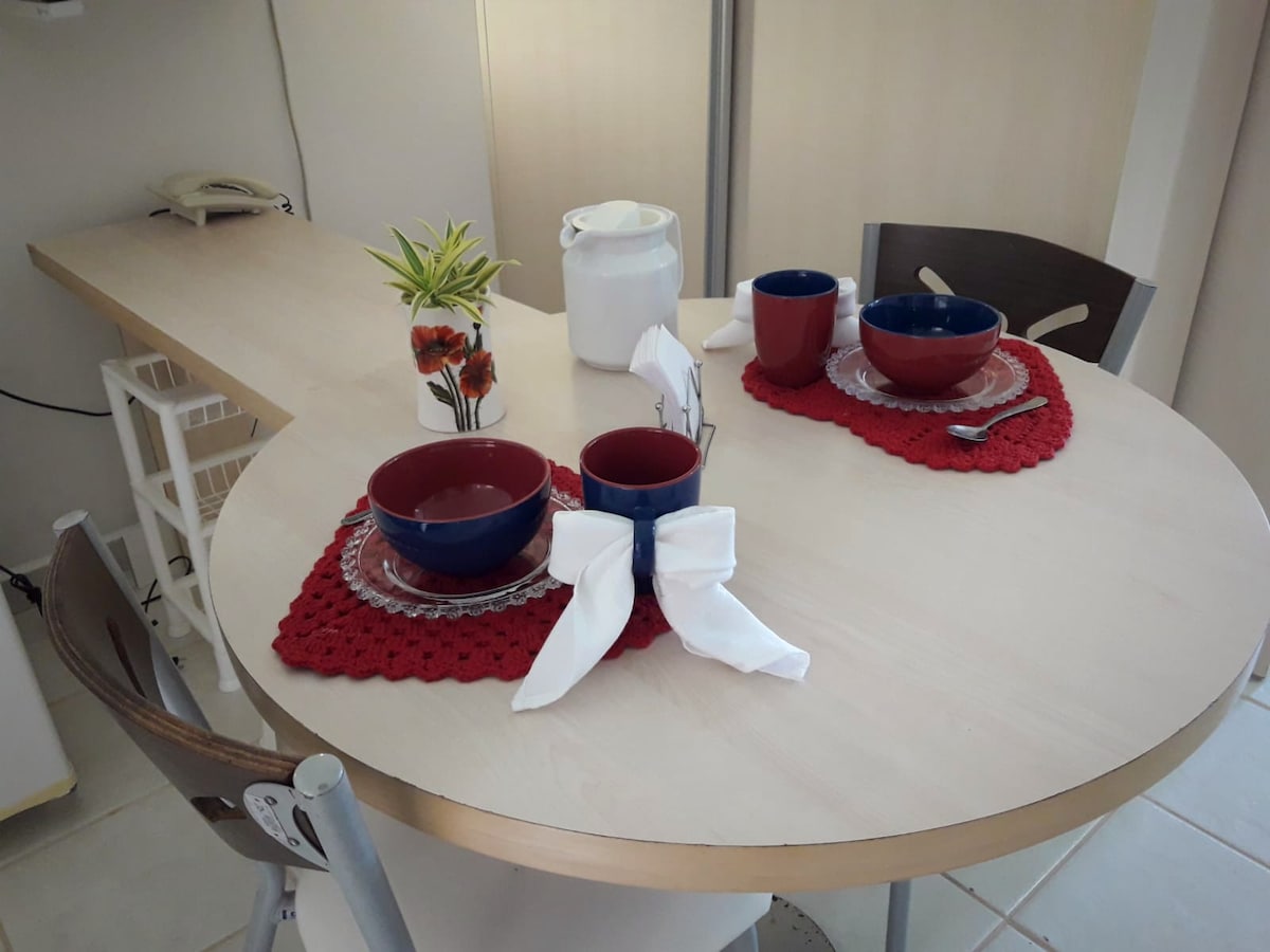 Nosso apartamento é muito aconchegante e BEM localizado!! Fica à 800m do Hot Park e da linda praia do cerrado. Possui elevador para maior comodidade, lindos jardins e 1 piscina. É grande, possui: 2 quartos, 2 banheiros, 2 closets, sala ampla e cozinha conjugada. 3 ar condicionados e TV de LED; 2 camas de casal, 2 camas de solteiro, 2 camas auxiliares e 1 sofá-cama; Geladeira, purificador de água, fogão, micro-ondas, sanduicheira, louças e muito mais... Tudo de qualidade! Vocês vão gostar!