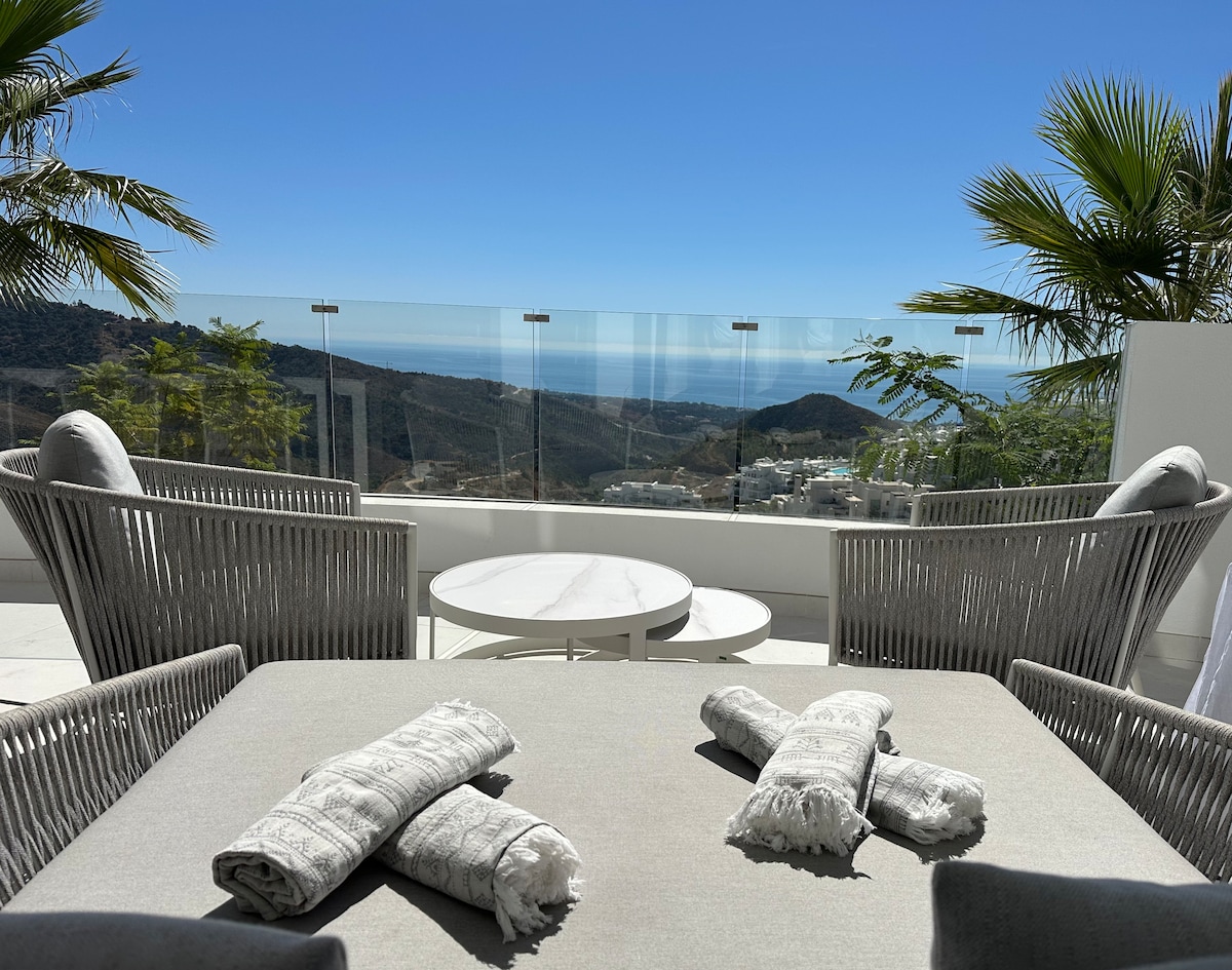 “Best terrace on the Costa!” Amazing PENTHOUSE studio, with 100m2 terrace, sunsets, sun all day, unique in Marbella. #honeymoonsuitesmarbella What our guests say: ★" ...Wake up to the 1M$ View! ★"... view of the sea and sunrise from your bed..." ★" ...absolutely nothing is missing from this clean and perfectly renovated studio..." ★" ...Great location right at the beach - outstanding host! ... the best AirBnB we found so far