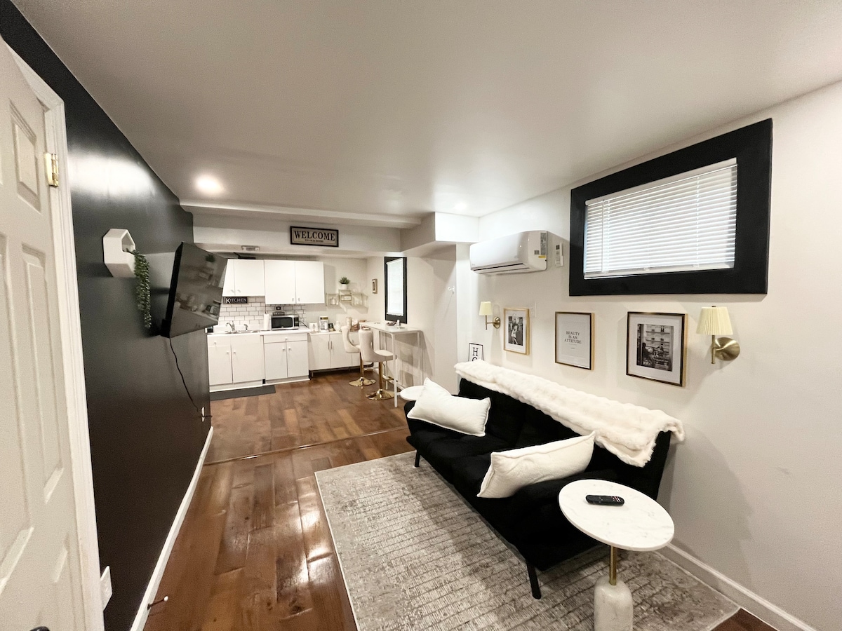 Tiny living done right! Discover 350 sq ft of stylish simplicity in this thoughtfully designed mini cottage. With an airy entry, cozy living area, smart kitchenette, full bath, lofted sleeping nook, and clever storage, it’s perfect for 1–4 guests seeking a relaxed stay—whether for a romantic retreat, work escape, quick stopover, or lively Charlottesville event like weddings, concerts, or triathlons.