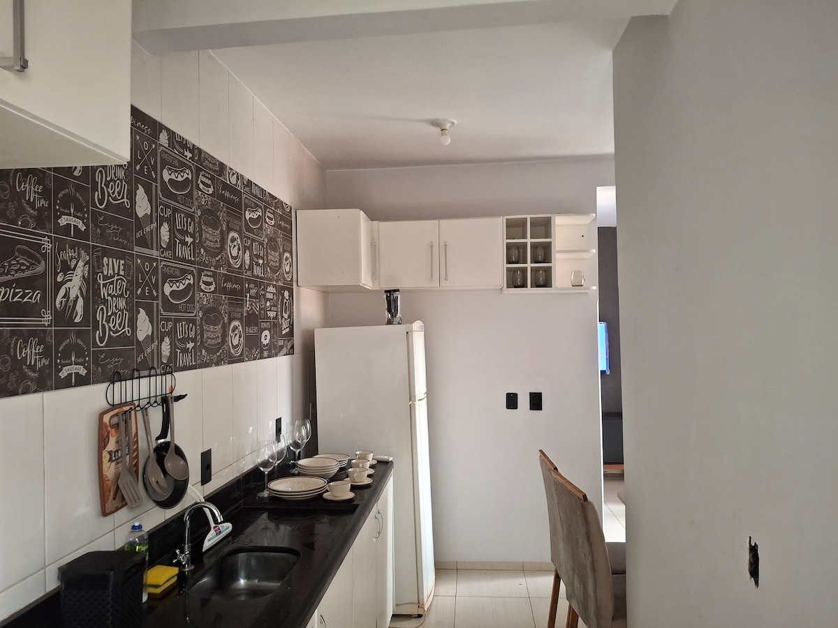 Um apartamento aconchegante com vista para o interlagos, bairro extremamente seguro com monitoramento 24h, guarita com câmeras na entrada do bairro, ideal para descansar e fazer uma caminhada no lago. E uma cortesia com lanchinho e água, para sua estadia ser completa.