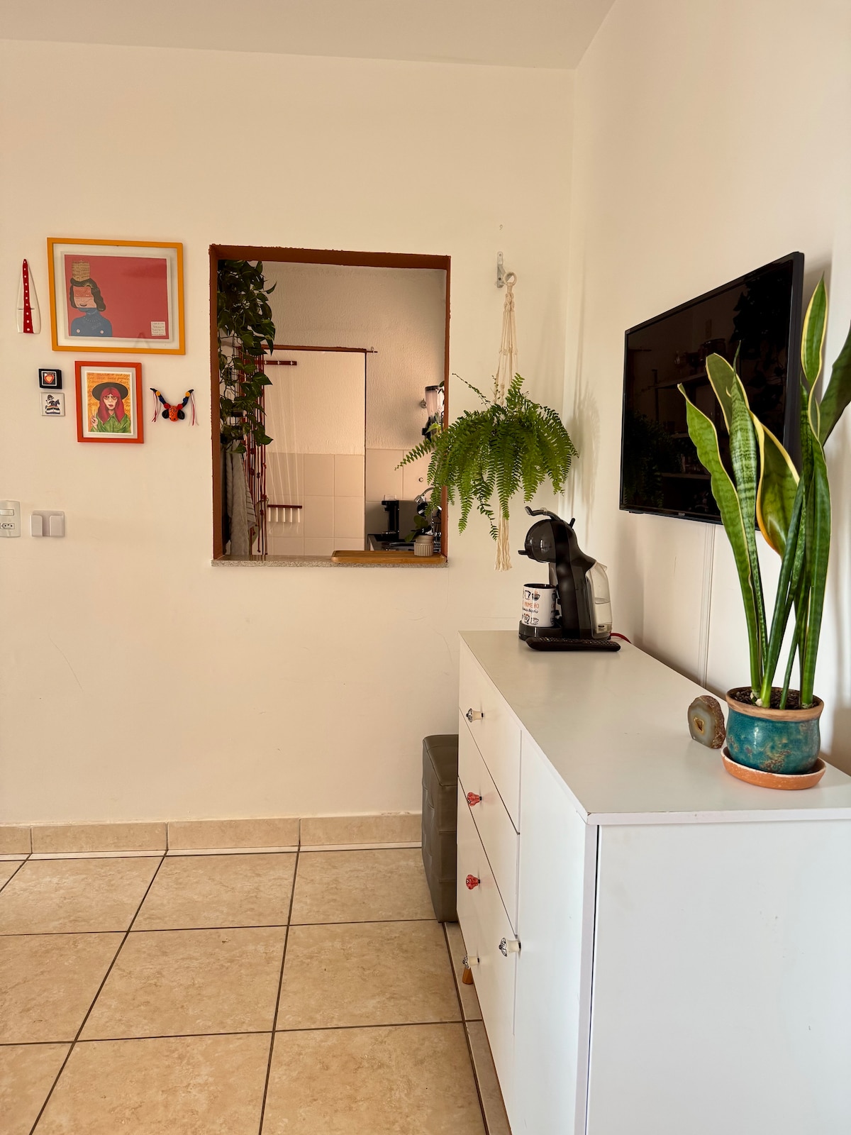 Espero que você possa descansar aqui :) Neste AP possui: 1 Vaga para carro pequeno 1 com cama de casal, ar condicionado e TV 1 com cama solteirão, ventilador, e mesa para estudos 1 banheiro Na sala possui apenas o sofá integrado com a sala de jantar com uma mesa e duas cadeiras (posso acrescentar mais duas) Na cozinha possui apenas o fogão. Área de lavanderia com um tanque. Sacada. Wi-Fi disponível. Estamos montando algumas coisas pra ficar melhor a cada dia :)