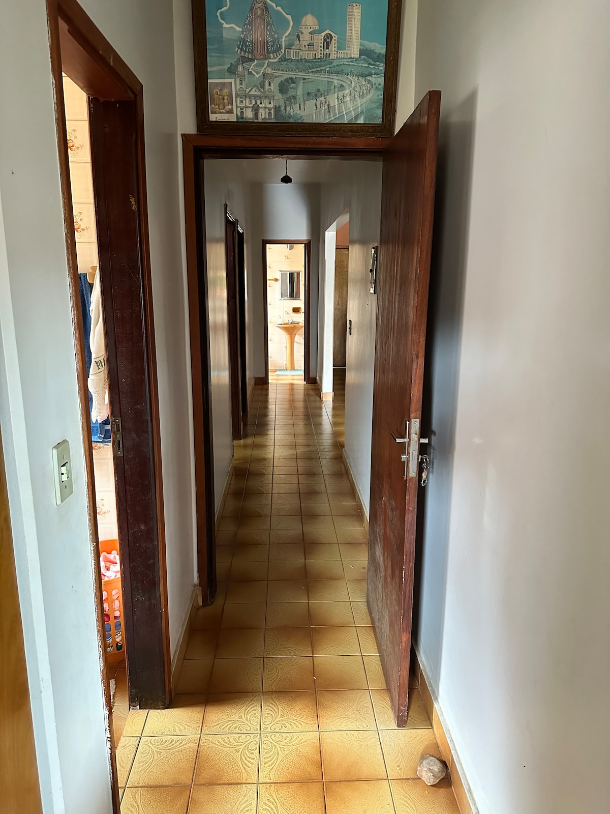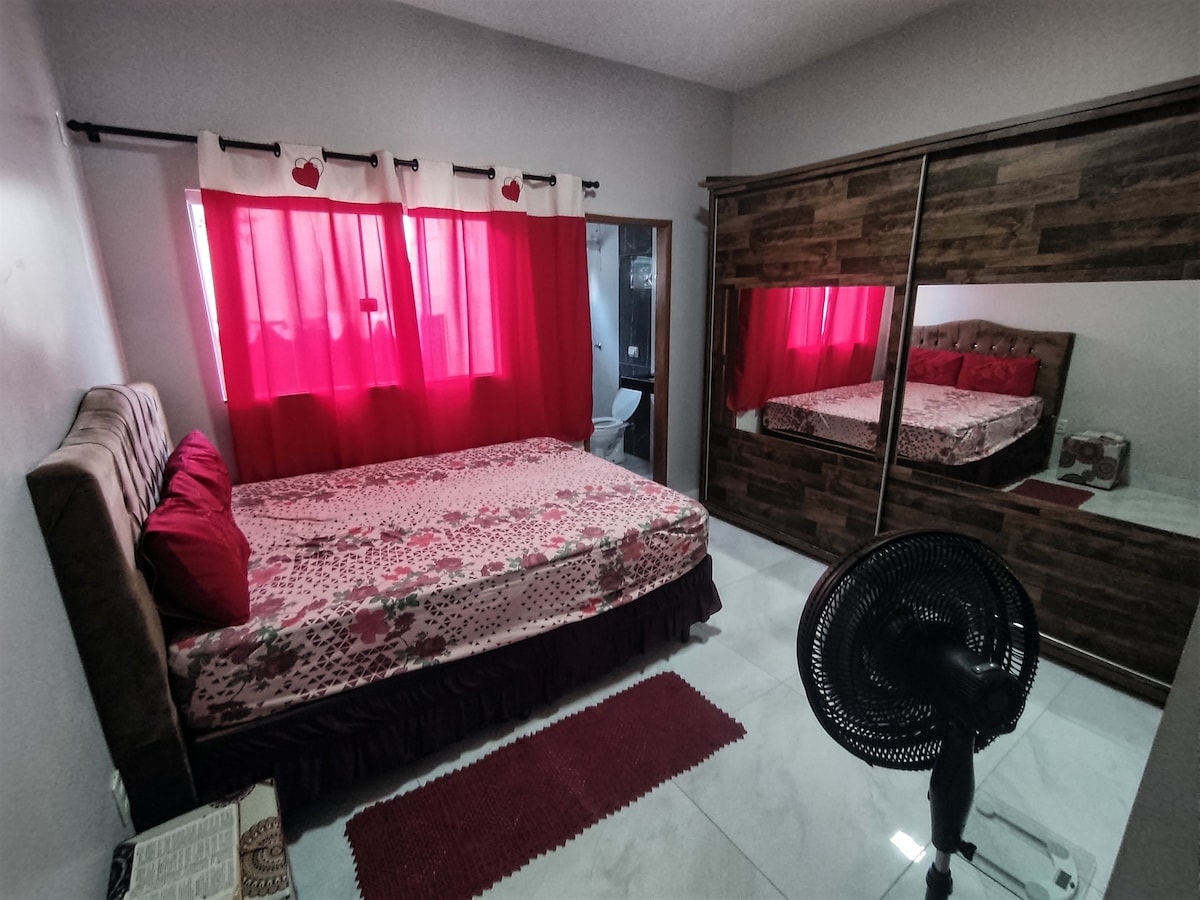 casa fica bem localizada, próximo a supermercado, panificadora, lanchonete, restaurante, farmácia. quarto com ar-condicionado.