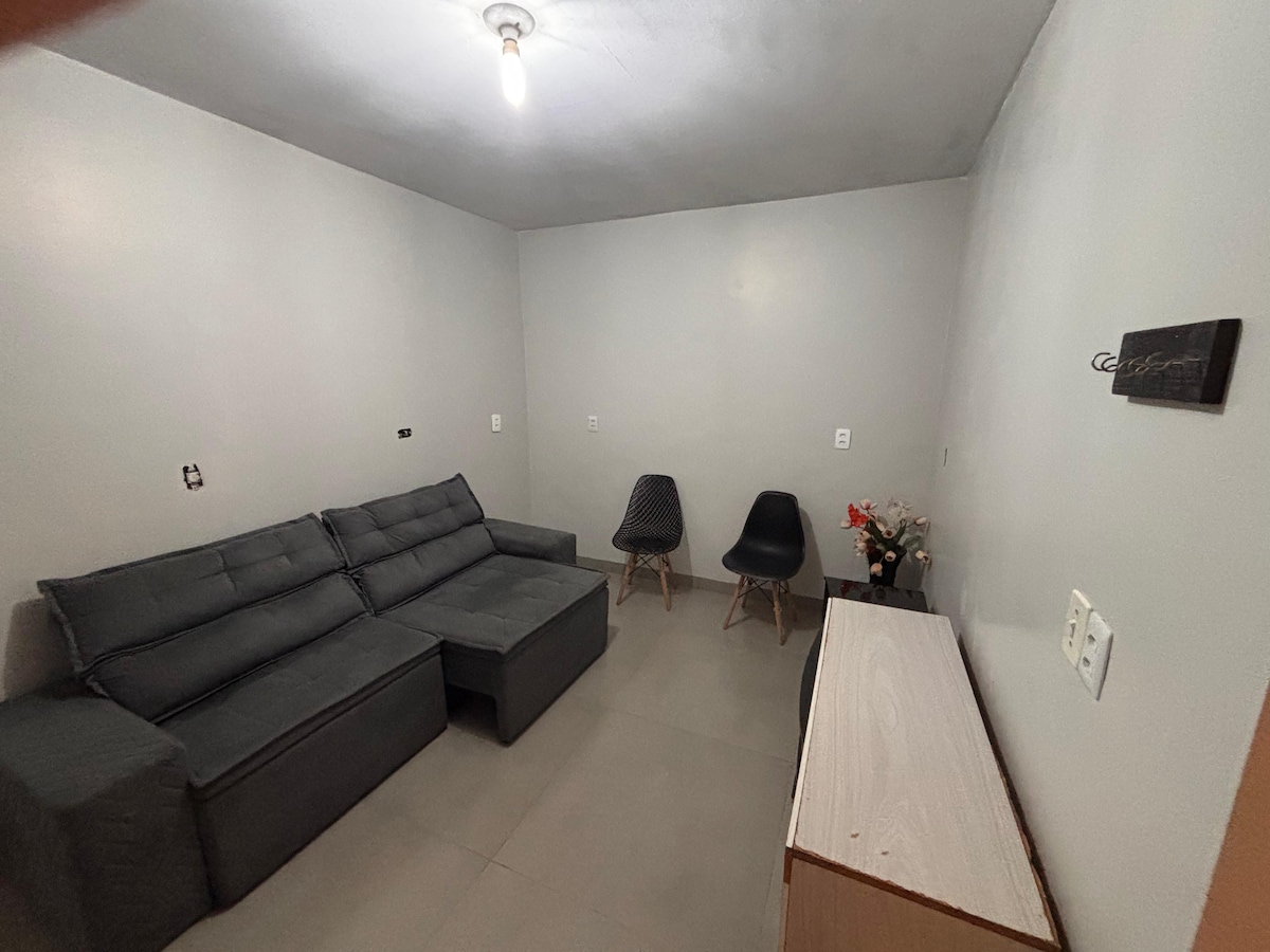 Relaxe neste lugar único e tranquilo. Perfeito para passar pequenas temporadas e equipada com tudo que você pode precisar seja pra descansar, cozinhar ou apenas curtir com amigos e família. Ambiente conta com internet, ar condicionado e vários utensílios domésticos. Localização privilegiada a menos de 200m de um parque/praça com pista de caminhada e quadras multiesportivas e a duas quadras do espetinho do Vinicius espeto referência na cidade. Obs: será cobrado a consumo de energia a parte.