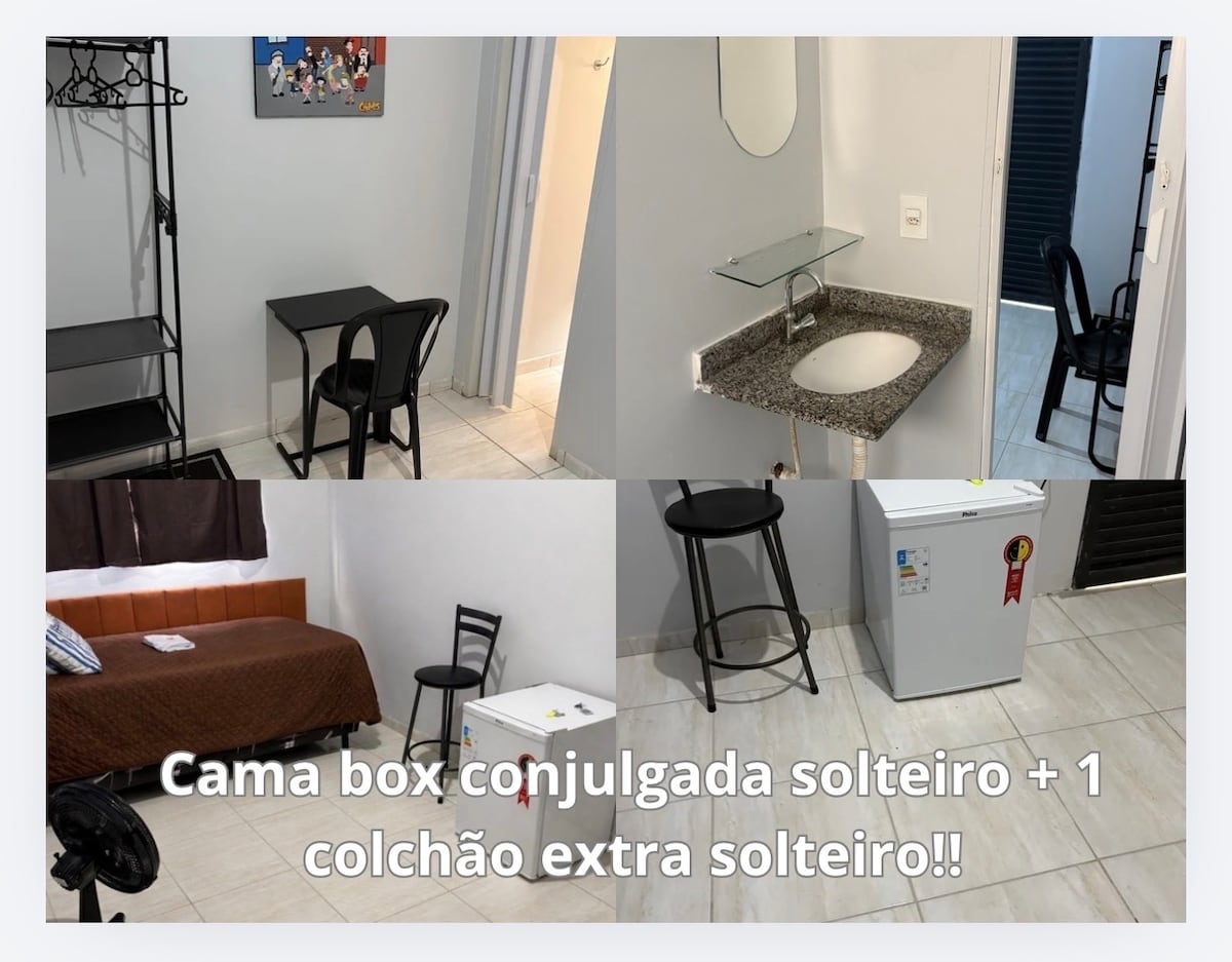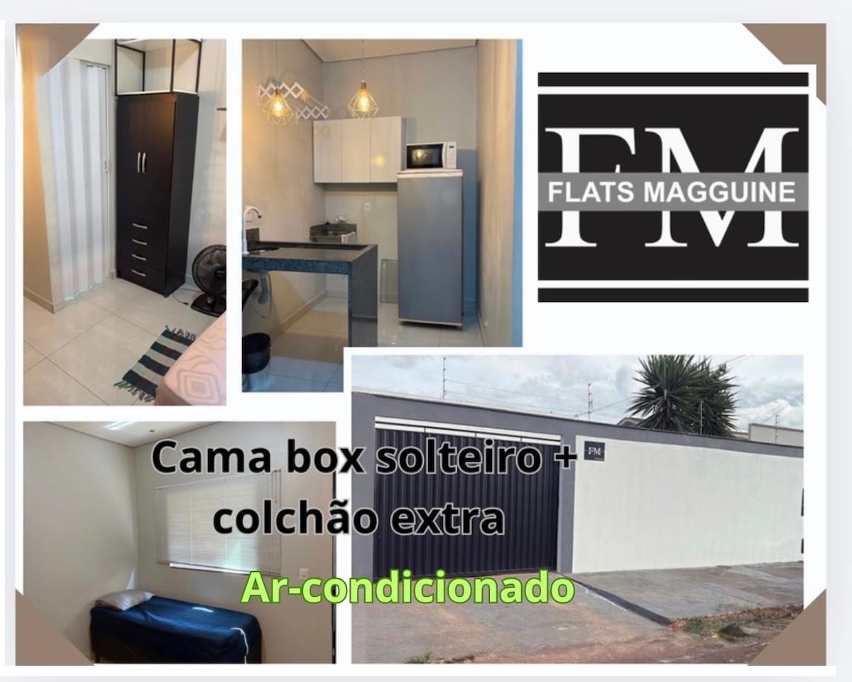 Flats Magguine Interlagos possui acomodações aconchegante e com todo conforto e praticidade que você precisa em sua estadia na capital do Agronegócio - Rio Verde. Acomodando até duas pessoas pois possui uma cama box conjugada de solteiro com mais 1 colchão extra de solteiro.