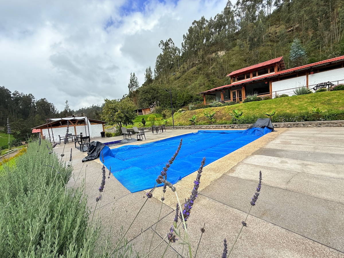 Disfruta de la paz del campo en un lugar de ensueño, rodeado de colinas en las faldas del majestuoso volcán El Altar, cada ventana pinta su propio paisaje, una recién inaugurada zona humeda (hidromasaje, Jacuzzi, sauna y Turco), en el exterior amplias zonas verdes, y espacios para compartir que sin duda te brindarán momentos únicos e inolvidables.