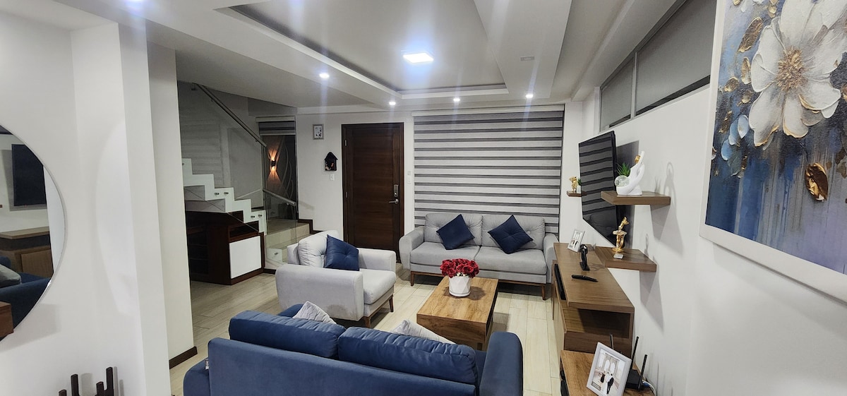 Casa Moderna, amplia y segura, solo 8 min del centro de Riobamba. Urbanización Privada juegos infantiles, áreas verdes. Patio privado. WiFi, TV curva de 48” + Prime y TV en cada habitación. Garaje para 2 vehículos y conjunto cerrado. Ideal para estancias largas, a 3 min de la Panamericana. Disfruta de un clima cálido, espectacular vista . Casa con decoración moderna, nueva con lavadora y secadora. Ideal para estancias largas o cortas