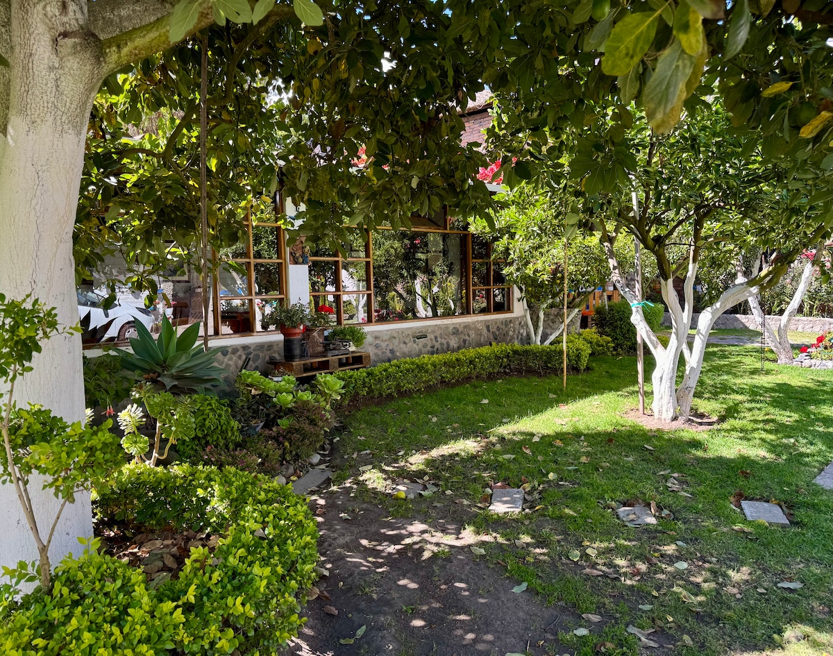 Disfruta del encantador entorno de este romántico lugar en la naturaleza. Relájate en nuestra tina de baño con vista hermosa hacia los árboles. Somos los cómplices de tus momentos especiales, si gustas decoraciones o recomendaciones de lugares en Riobamba, estaremos gustosos de servirte en la casa principal situada frente a la suite.