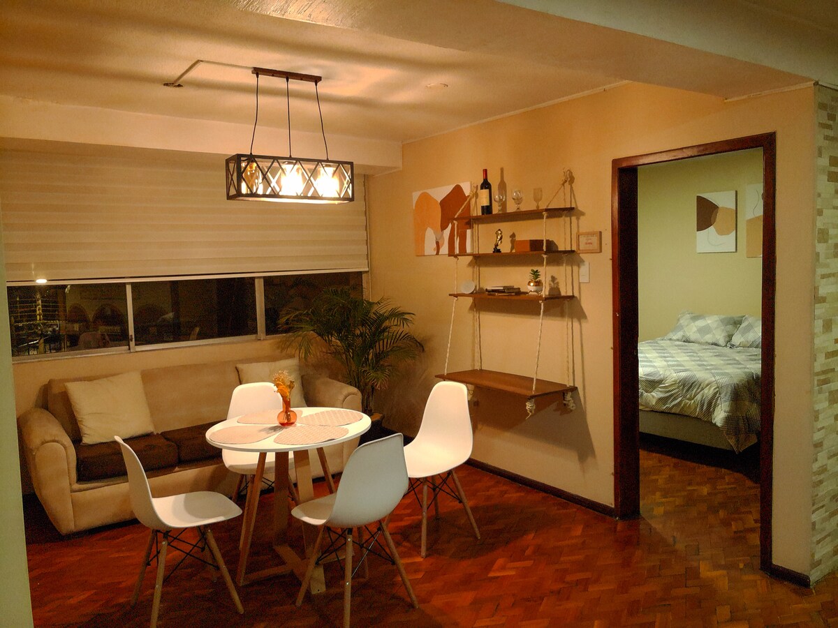 Cuando te alojes en este acogedor y cómodo mini departamento, ubicado a 300 m de la Terminal Terrestre y del Estadio Olímpico de Riobamba, disfrutarás de una localización estratégica en la ciudad. Puedes recorrer las zonas turísticas y coloniales caminando. En el sector encontrarás instituciones bancarias, áreas de entretenimiento nocturno, juegos para niños, supermercados, farmacias, restaurantes, parques y otros lugares. Quédate en este alojamiento único y disfruta de una visita inolvidable