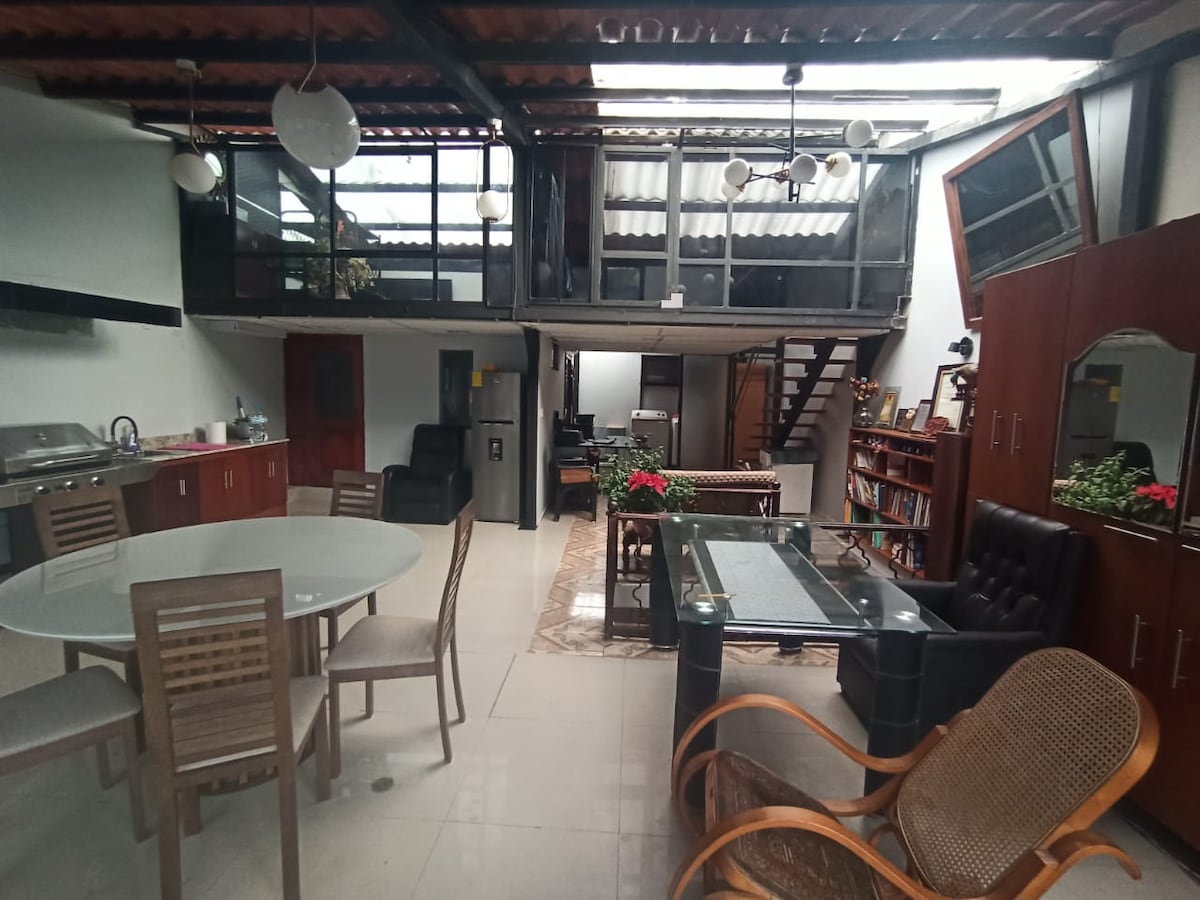 Casa Moderna, amplia y segura, solo 8 min del centro de Riobamba. Urbanización Privada juegos infantiles, áreas verdes. Patio privado. WiFi, TV curva de 48” + Prime y TV en cada habitación. Garaje para 2 vehículos y conjunto cerrado. Ideal para estancias largas, a 3 min de la Panamericana. Disfruta de un clima cálido, espectacular vista . Casa con decoración moderna, nueva con lavadora y secadora. Ideal para estancias largas o cortas