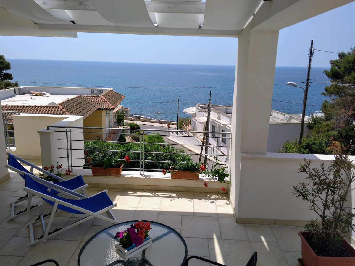Enjoy a stay in this spacious, recently renovated apartment overlooking the crystal-clear waters of the Ionian Sea. With its three elegant bedrooms and three full bathrooms (plus a fourth with a washing machine), it’s ideal for families or groups seeking comfort and style. The bright living room opens onto a balcony, where you can unwind while admiring the spectacular sea view. Located just steps from the beach, it offers the perfect blend of relaxation and convenience.