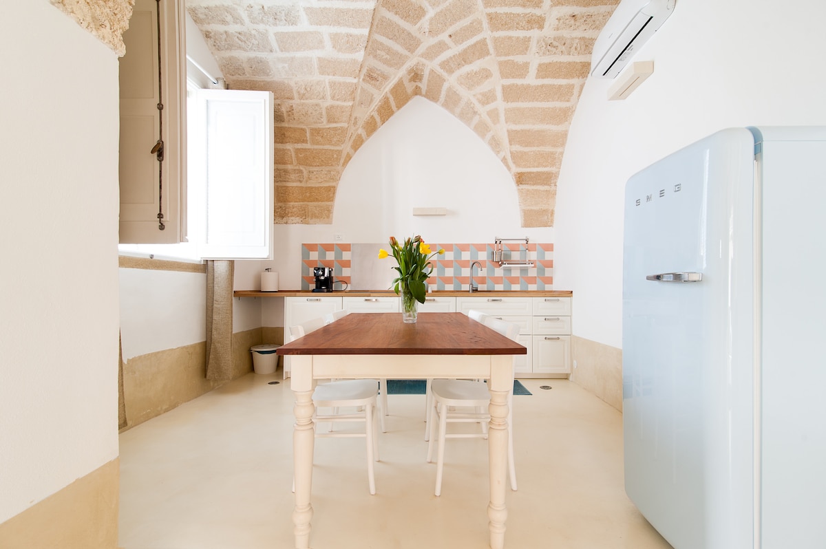 Il Cubo is a stylish and spacious loft for two tucked away in a courtyard in the historic center of Nardo. Ideal for a romantic stay in this remarkable Baroque town and a perfect retreat for exploring the beaches, villages, olive groves and wineries of the Salento region of Puglia (Apulia) year round. Dine under the stars on the private terrace or stroll the charming streets to many delicious restaurants and cafes.