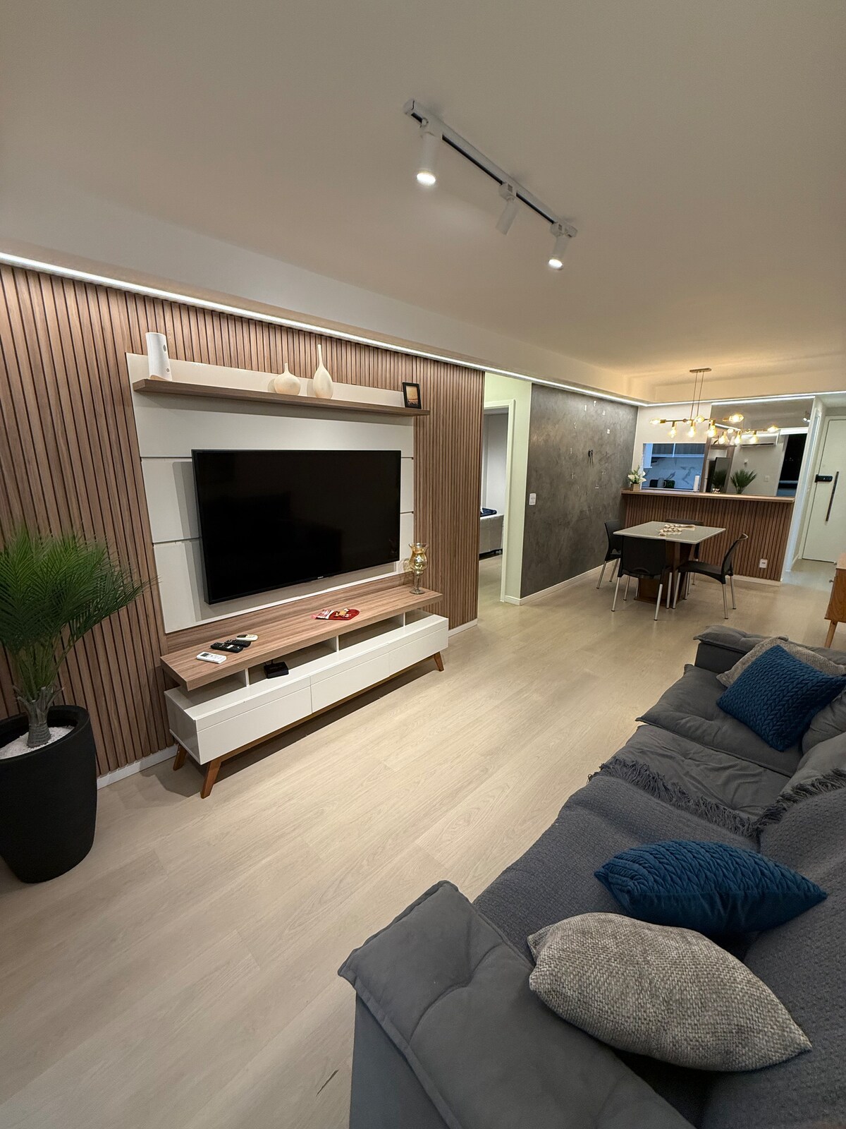 Apartamento charmoso e confortável, ideal para famílias ou amigos. São 2 quartos (suíte queen + casal) e sala com sofá-cama, todos com ar-condicionado, Smart TVs e varanda ampla e iluminada. Cozinha completa com lava e seca, geladeira duplex, airfryer, cafeteiras (elétrica e Nespresso). Wi-Fi rápido e secador de cabelo disponíveis. A localização é estratégica: apenas 5 minutos da Farmasi Arena, Parque Olímpico, RioCentro e Projac, e a 10 minutos das praias do Recreio, Reserva e Barra da Tijuca.