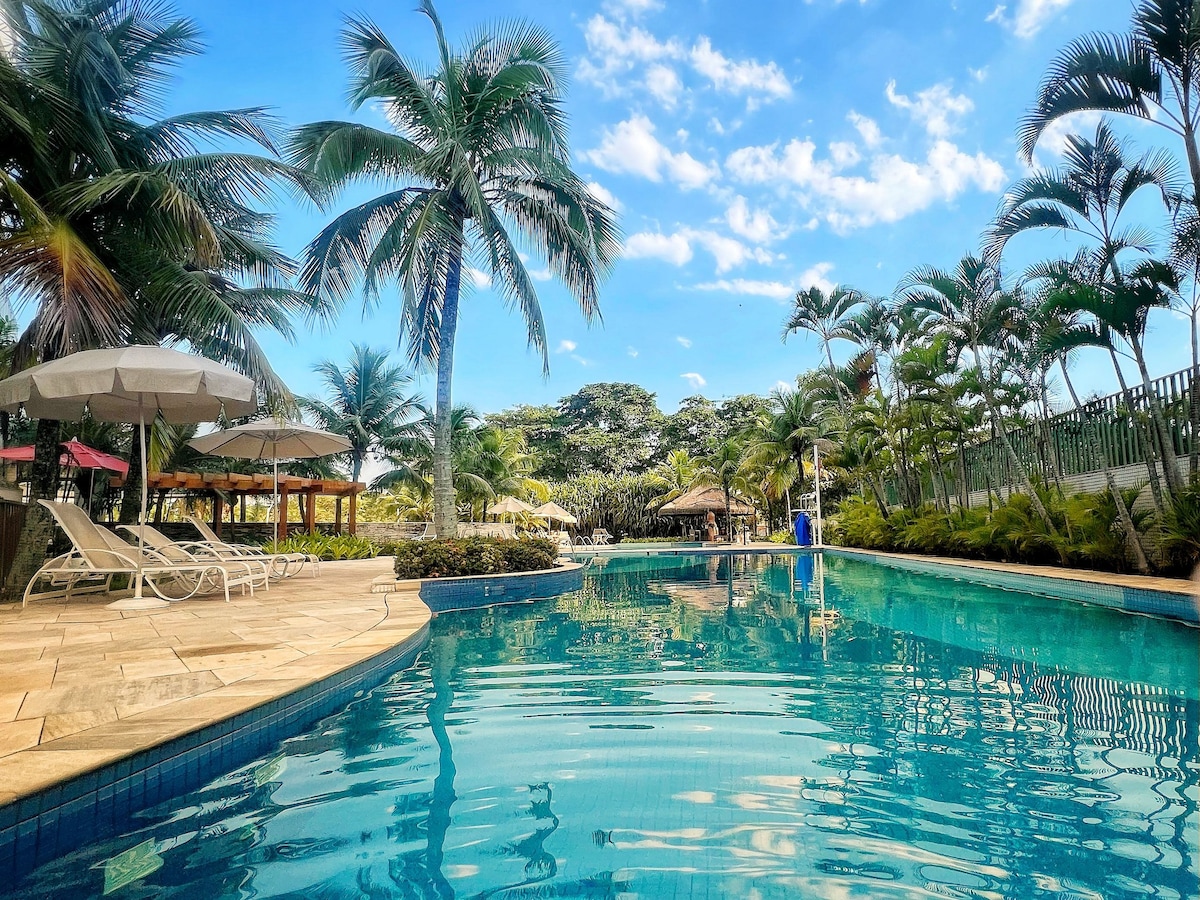 O apartamento é claro, arejado e cuidadosamente preparado para oferecer conforto. Dispõe de duas camas de solteiro que podem ser unidas, formando uma cama de casal, além de TV a cabo, ar-condicionado, armários e cozinha equipada com frigobar, micro-ondas, cafeteira, filtro de água, fogão de indução e sanduicheira. Ideal para quem viaja a lazer ou a trabalho. O condomínio oferece infraestrutura de excelência, com piscina, sauna, academia e restaurante.