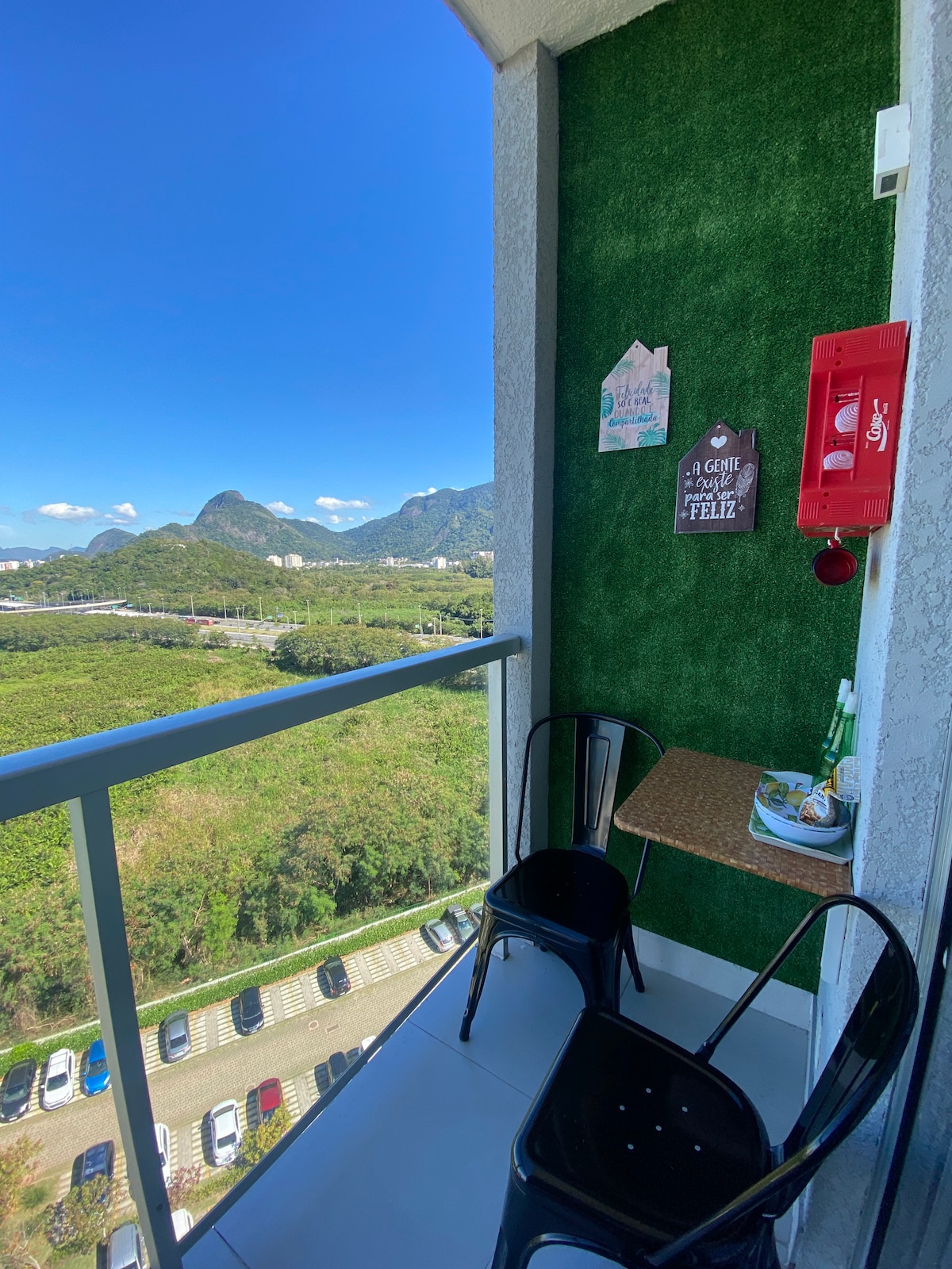 SINTA-SE EM CASA! Aconchegante apartamento de 2 quartos no 7º andar (com rede de proteção) com estacionamento gratuito. Smart tv no local e wifi (excelente velocidade de conexão). NÃO POSSUI AR CONDICIONADO. Local próximo a bares, shoppings a céu aberto, farmácias, supermercados, Mc Donald's, Lojas Americanas e Projac. 20 min da Praia da Barra e do Recreio. Apartamento em frente ao Riocentro (só atravessar a rua), Parque Olímpico e Jeunesse Arena. AS COMODIDADES ESTÃO MAIS ABAIXO NO ANÚNCIO