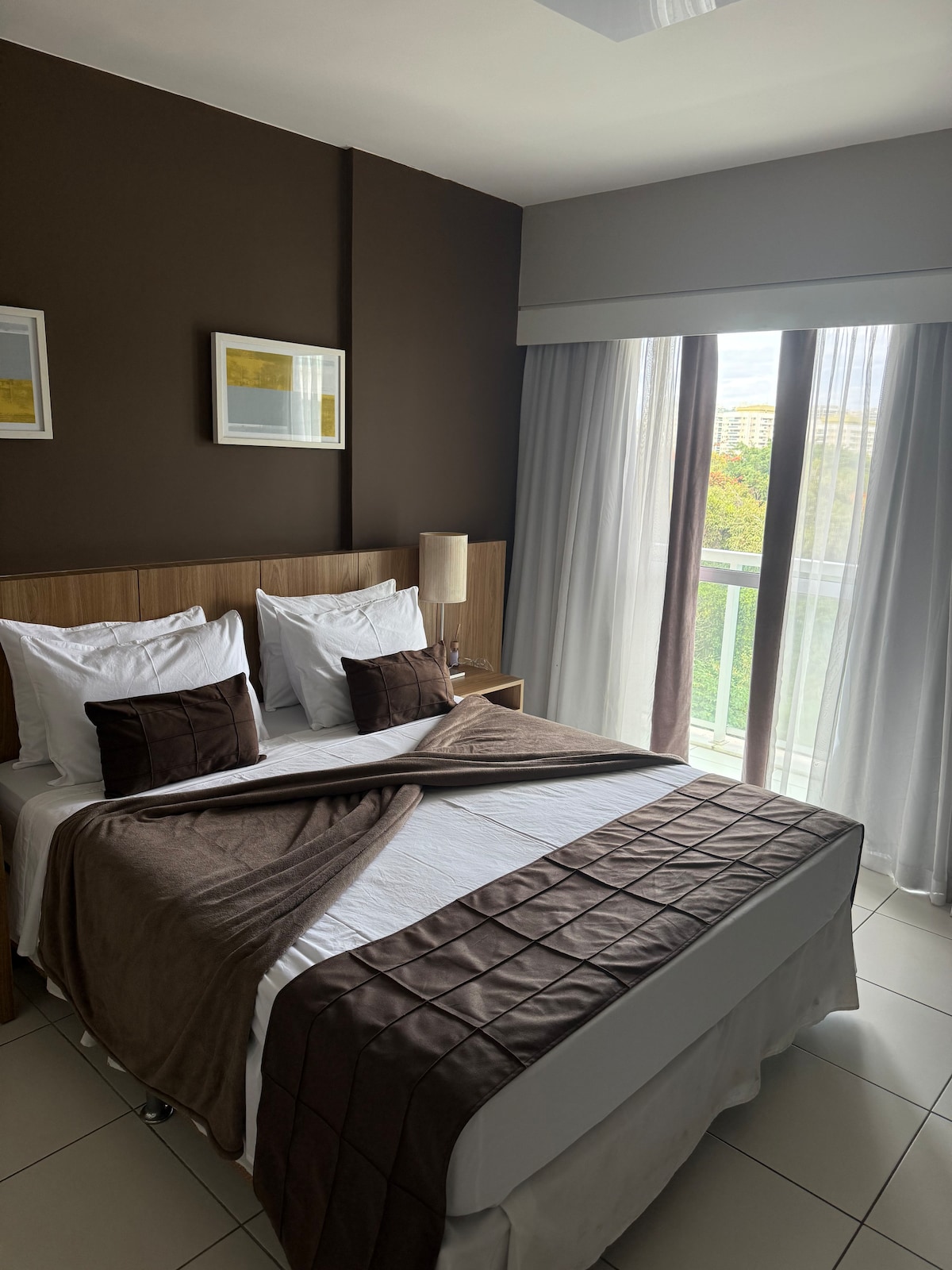Apartamento preparado para moradia com cama, ambiente climatizado, tv a cabo, microondas, frigobar e pia. A estrutura conta com Piscina, academia, sauna, restaurante e recepção 24h. Informe corretamente o número de hóspedes durante o ato da reserva. a inobservância deste item poderá acarretar em cobranças adicionais.