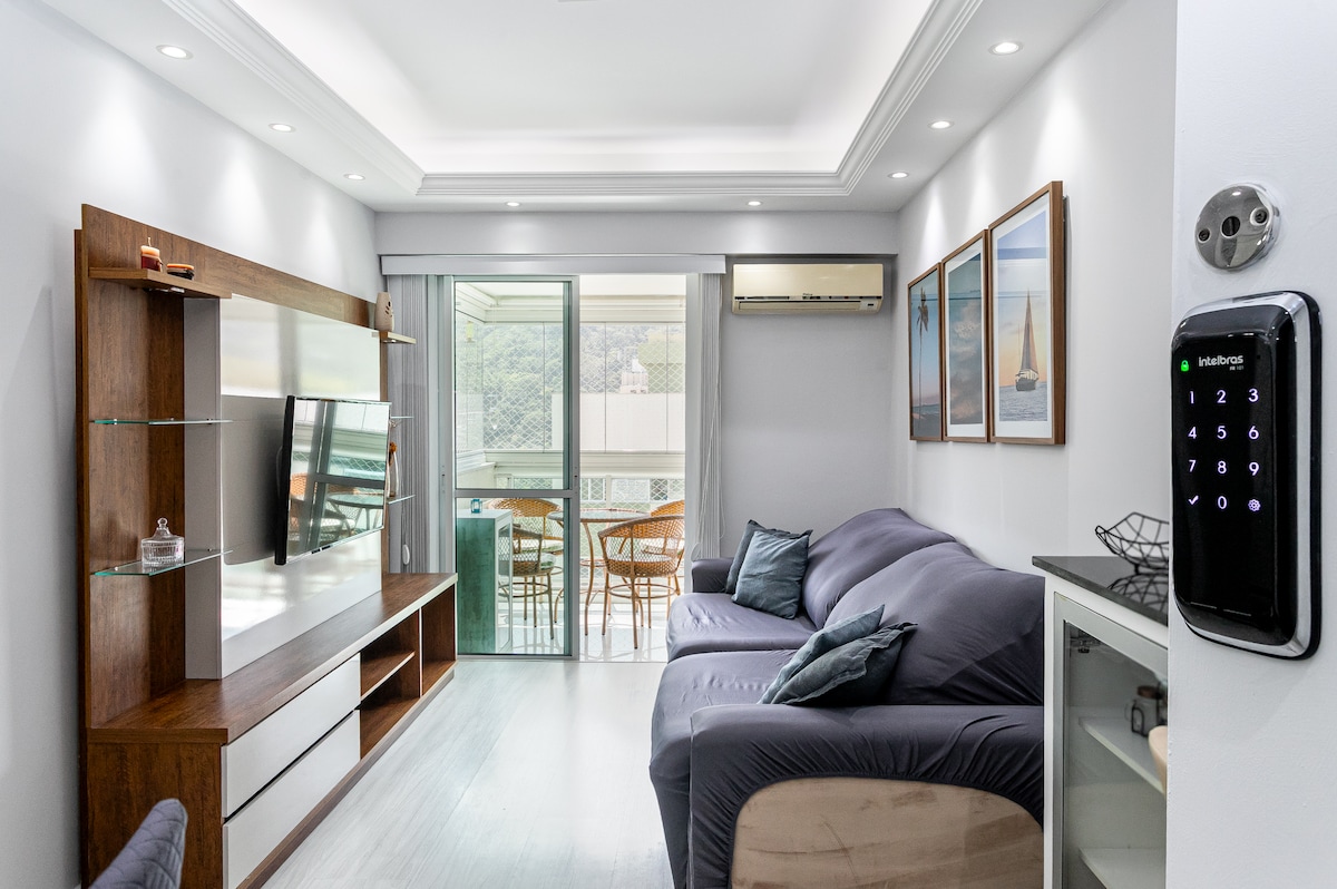 Lugar delicioso com muito verde, varanda com vista, rede e sol da manhã, sala integrada (sofá-cama, TV, split), quarto com cama queen, closet e cofre. Piscina aquecida, restaurante e estacionamento no prédio. 📍 Localização perfeita: região tranquila, perto de mercados, shoppings e praias da Barra. Fácil acesso de carro, metrô, BRT, uber, barco-táxi ou bike! Descubra porque Tim Maia eternizou que 🎶 “Do Leme ao Pontal não há nada igual!”.