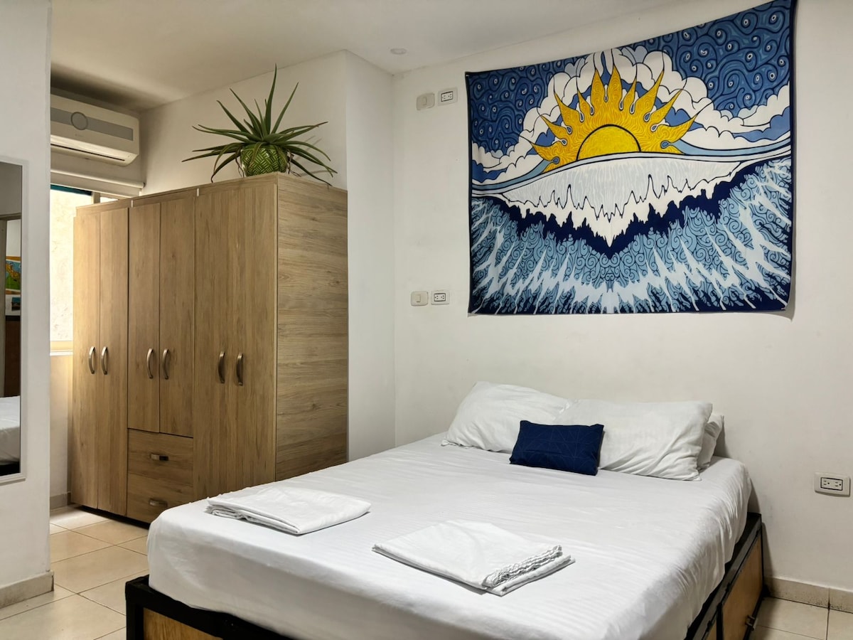 El espacio está diseñado para garantizar confort y practicidad, ideal para familias, grupos pequeños o viajeros que buscan una excelente ubicación. La habitación cuenta con una cama doble y un camarote, ofreciendo capacidad para varias personas sin perder comodidad. Dispone de baño privado totalmente equipado y aire acondicionado, Su cercanía a la playa, restaurantes, zonas comerciales y atractivos turísticos hace que esta habitación sea una opción ideal para disfrutar lo mejor de la ciudad.