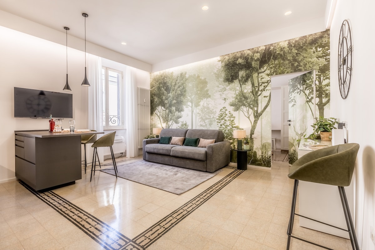 Completely renovated two-room apartment for 3 people. It has a large bedroom and a living area with an american kitchen, table for 4 and sofa bed. Bathroom with shower and chromotherapy lights. This is a Green solution: 100% renewable energy, fully LED lighting, green cleaning products, eco-friendly Airlite wall paint, eco-friendly soaps and ethical finance. Connected and close to monuments and services. Comfort and professional cleaning for a wonderful holiday!