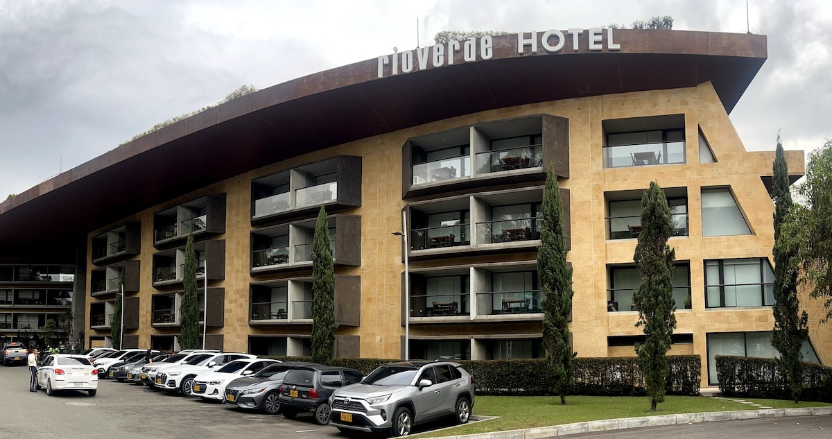 Disfruta una estadía cómoda y completa en el **Hotel Río Verde**🍃💚 ubicado a solo 5 minutos del aeropuerto José María Córdova y cerca del Hospital San Vicente. El hotel ofrece restaurante **Al Alma**,gimnasio, sauna turco, terraza, zona de trabajo, e **internet en todo el hotel y en la habitación**. La habitación está equipada con todo lo que necesitas💫 Ideal para descansar, trabajar o pasar unos días cerca del aeropuerto con todas las comodidades. ¡Te esperamos!