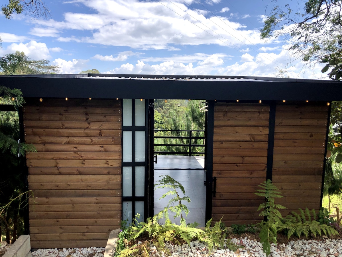 Escape to Aura Cabins in Llanogrande a romantic, luxurious sanctuary nestled in nature just 20 minutes from José María Córdova Airport. Surrounded by lush landscapes and calming sounds, it's 5 minutes from restaurants, markets, and malls. Reconnect with nature in your cabin, with a serene lake, natural light and tranquil stream. Unwind in the outdoor hot tub, gather by the fire pit for a lakeside BBQ or enjoy movie nights in the living room. Wake to birdsong and immerse yourself in the forest