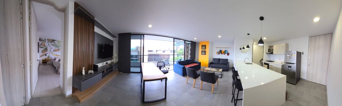 Enjoy a stylish experience at this centrally-located place in Poblado Area, walking distance to Amsterdam Plaza, one of the best mall in the city with amazing places to dine in, or take away, close to El Tesoro shopping mall, 5 minutes uber ride to Provenza and parque lleras, Located in a brand new building with plenty of amenities for you and your family: pool, fully equipped gym, jacuzzi, terrace, 24 hours security, coworking places with wifi and a well known restaurant in the 4th floor.