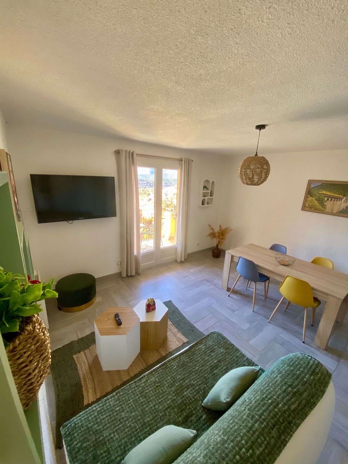 Officially rated 3 ⭐ furnished holiday rental This beautifully appointed recently renovated apartment is situated in a peaceful part of Collioure with a fantastic view of the vineyards, close to popular hiking trails. The large living room with new aircon opens up onto a south facing terrace perfect for enjoying early evening drinks. It’s just a short walk to the many beaches and the castle, and the local boulangeries and shops. There’s a garage ready for you when you arrive.