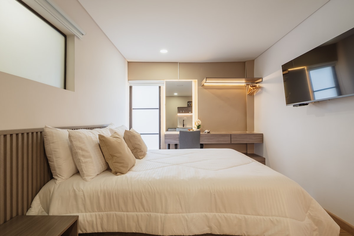 Vive una verdadera experiencia en nuestro sofisticado Loft. Ubicación privilegiada en el centro comercial cerritos mall, uno de los lugares más modernos y proyectados de la ciudad de Pereira en el sector de Cerritos. Disfruta de un apartamento completamente equipado: AC, área de trabajo, estacionamiento gratuito, cocina equipada, WiFi , acceso a transporte y vías principales. Ideal para: Viajeros de negocios, estancias por eventos, parejas o viajeros solos que buscan tranquilidad y conveniencia.