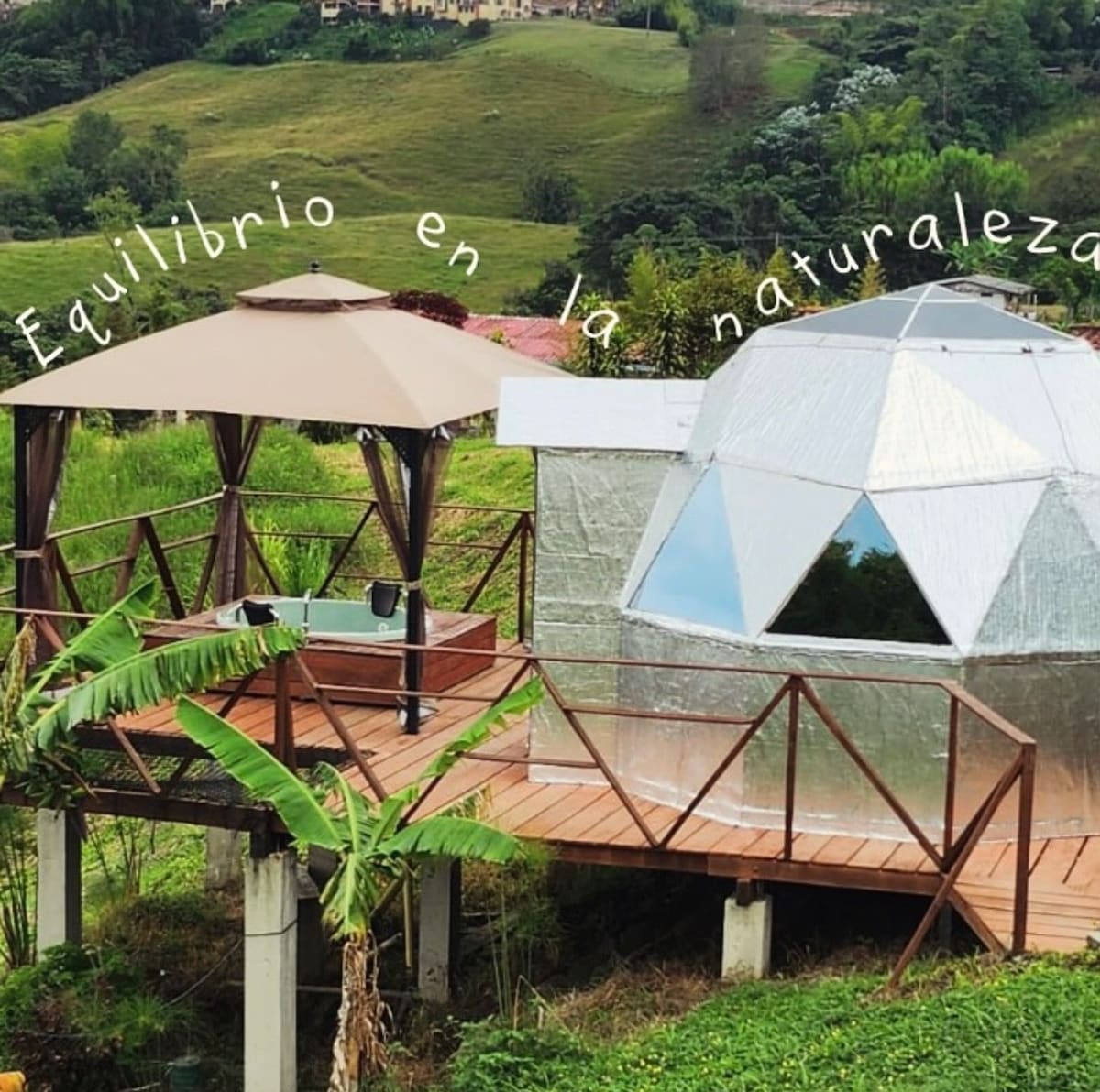 Our GLAMPING QUERENDONA consists of one comfortable dome with a Queen-size bed, private jacuzzi, a complete bathroom, a balcony, a dining room for two and a catamaran Mesh, all in an area of 50 square meters. GRAN VISTA Glamping and Suites is the country accommodation with the best view of Pereira and only 15 minutes from the city center. Breakfast included and exquisite menu for dinner, prior reservation.
