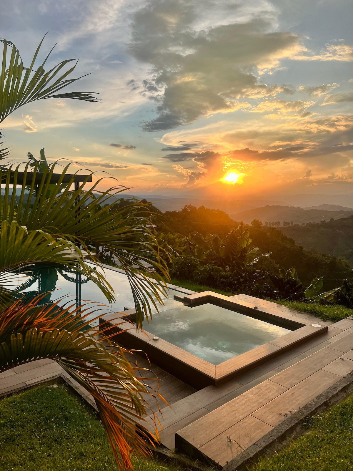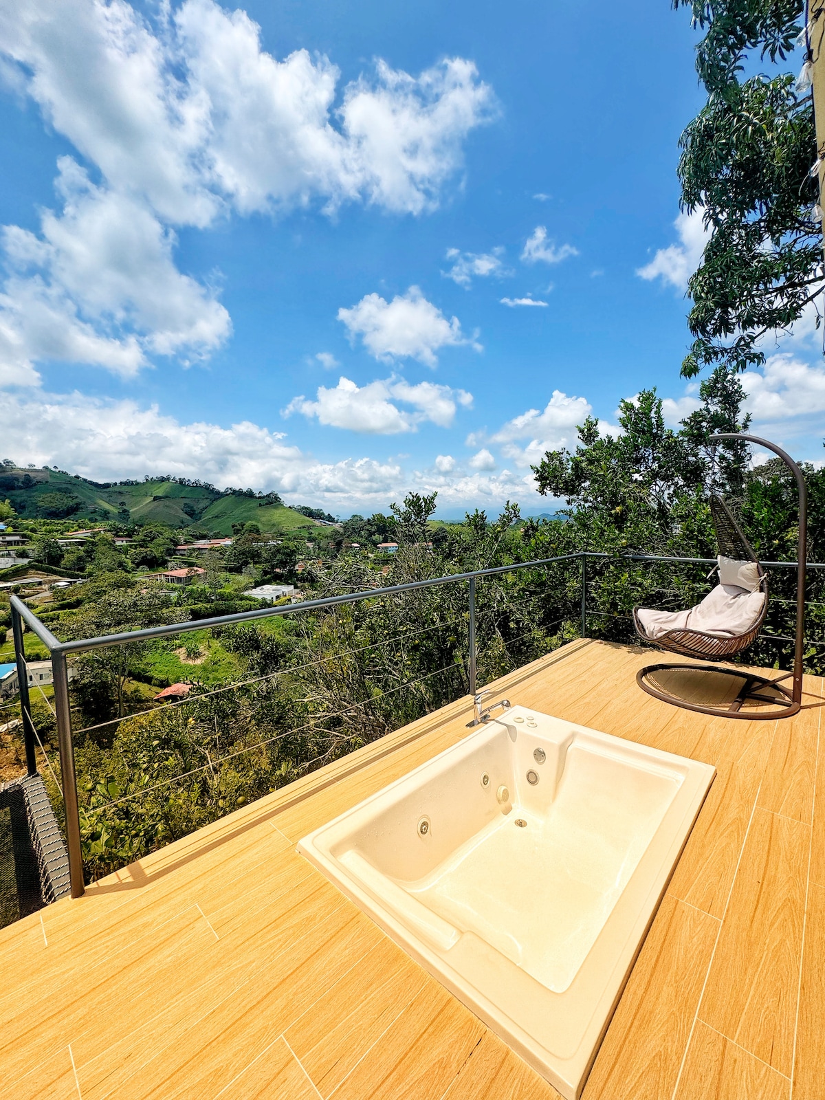 Descubre Villa Luna, un refugio de lujo en el corazón del paisaje cultural cafetero. Rodeado de cafetales y naturaleza, este espacio privado ofrece cama king size, ducha caliente con vistas a los paisajes cafeteros, jacuzzi climatizado de piedra natural, cocina y una malla catamarán para disfrutar de las vistas. Perfecto para desconectarte, relajarte y vivir momentos inolvidables. Incluye desayuno gourmet para dos personas. ¡Haz de tu estadía una experiencia única en el eje cafetero!
