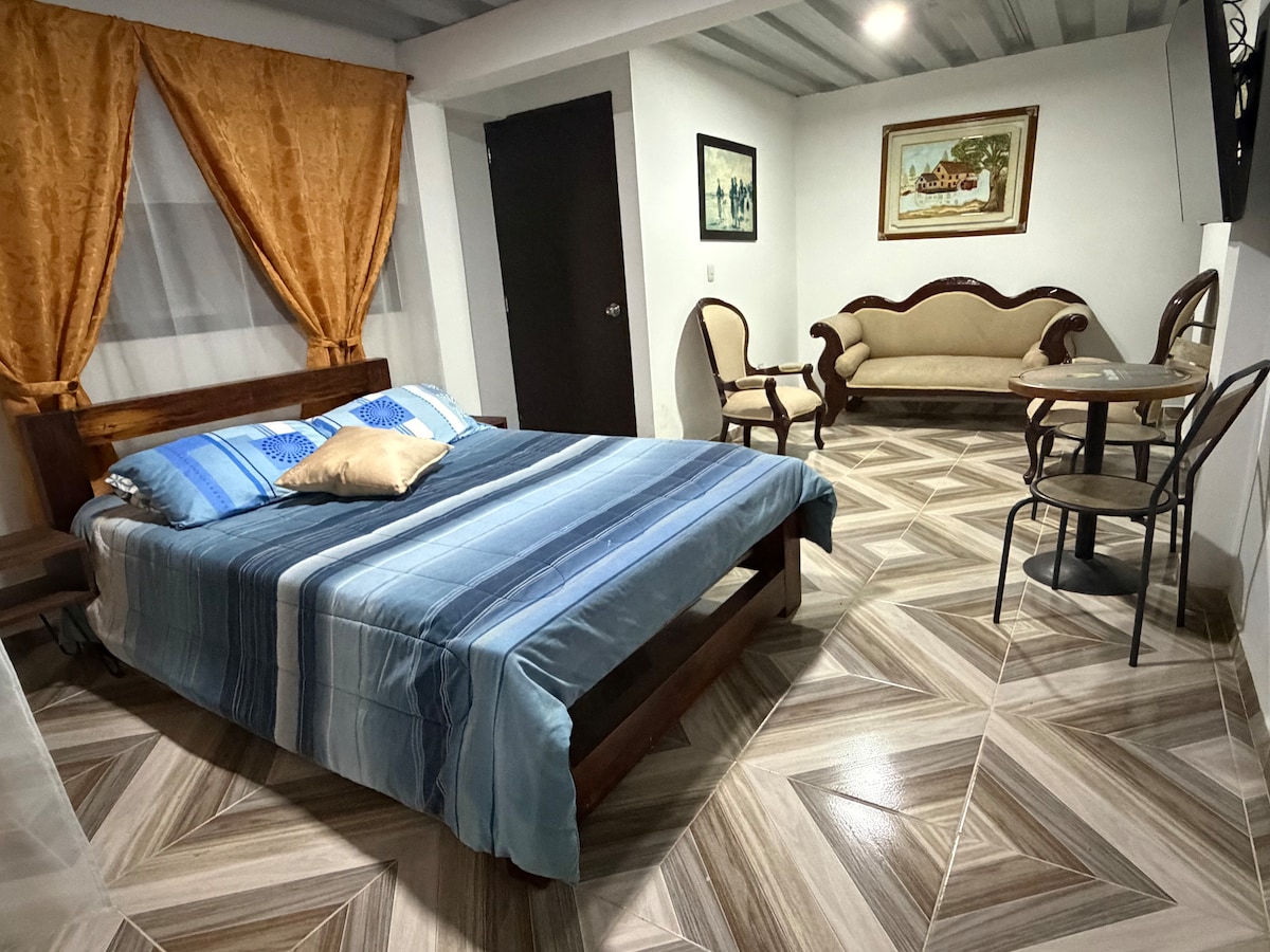 Disfruta de la sencillez de este alojamiento tranquilo (zona residencial), acogedor y céntrico, acceso cercano a rutas de autobús y sistema de cable aéreo para visitar diferentes sitios de la ciudad, como el centro, terminal, El Cable, Villamaria y Chipre. Incluye parqueo al aire libre en bahía común gratuito, con vigilancia en el día y en la noche. Cocina funcional y con elementos, nevera, agua Caliente, escritorio, antejardín, WiFi, Netflix y TDT. Minimercado a 2 cuadras y Super a 4 cuadras.