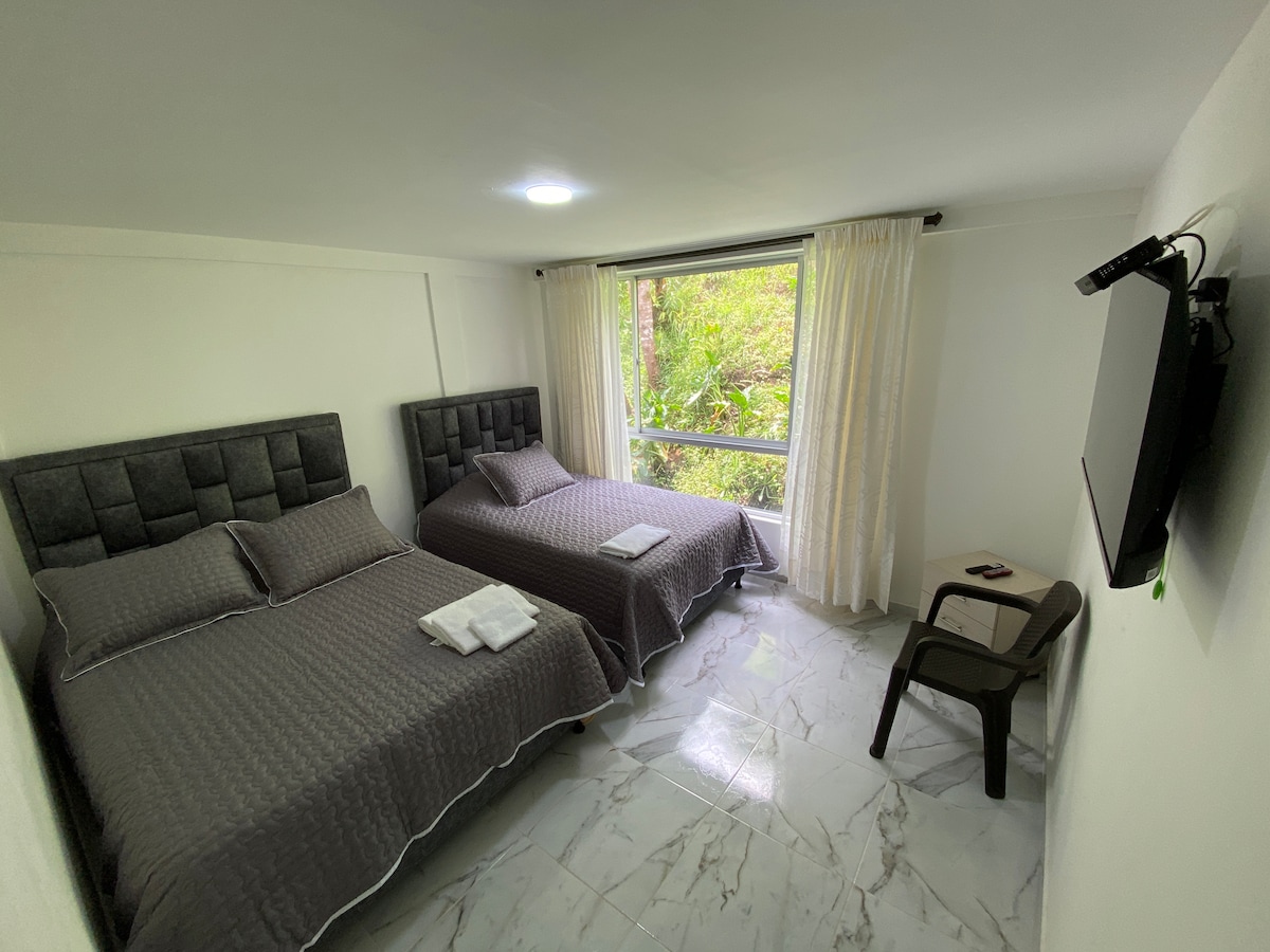 Guests love Ceiba Rooms for its convenient location just five minutes from Matecaña International Airport. Enjoy a serene atmosphere with a beautiful garden, perfect for relaxing with the melodies of birds or a cup of coffee. Our comfortable rooms cater to various needs, featuring private bathrooms and modern amenities. Whether you choose a standard room, double room, suite, or large group room, each offers privacy and convenience. Ceiba Rooms blends comfort, tranquility, and exceptional service