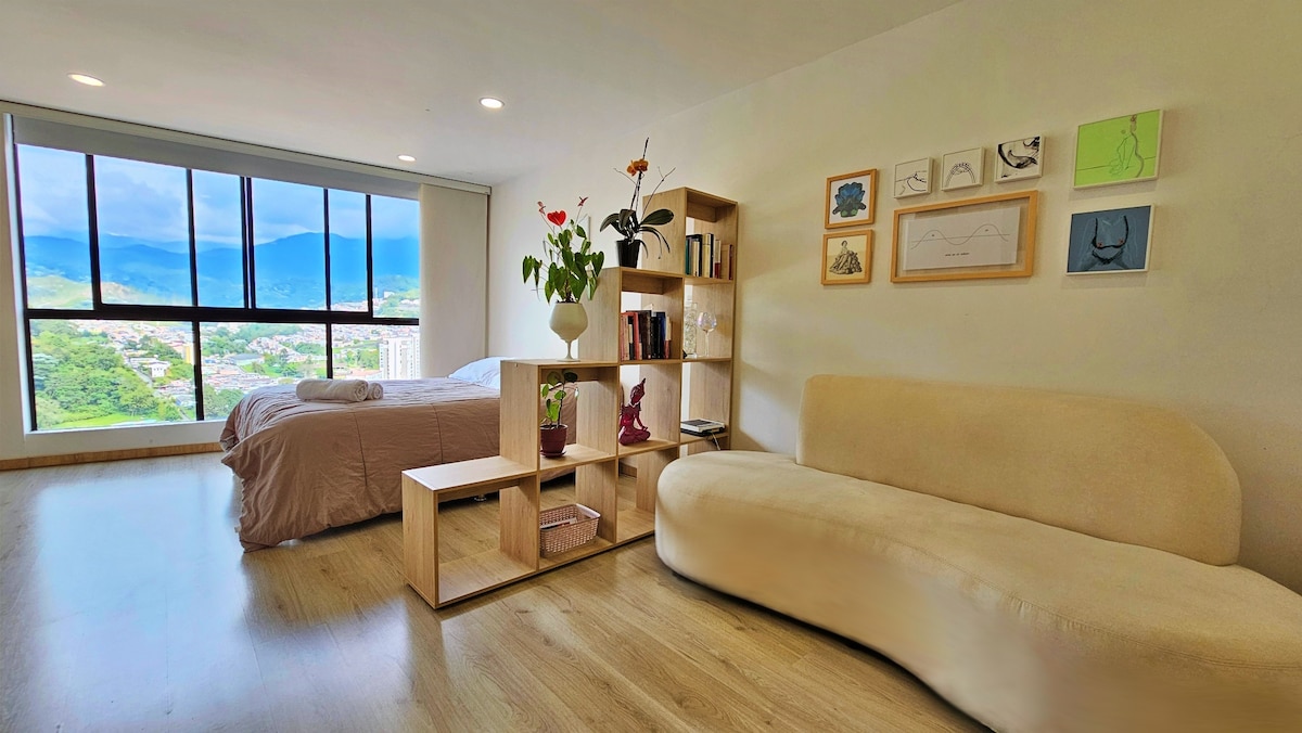 Disfruta de una experiencia con estilo en este alojamiento céntrico, moderno y lujoso, regálate a ti mismo una cálida y acogedora estadía en un espacio diseñado para quienes lo merecen en el mejor lugar de la ciudad. Sala con sofá cama y baño social, área de trabajo, wifi, comedor, cocina, zona de ropa, habitación principal con baño Además de tu confort estarás cerca a supermercados, centros comerciales, restaurantes, parques, droguerías, bares, cafés, transporte público y cable aéreo.