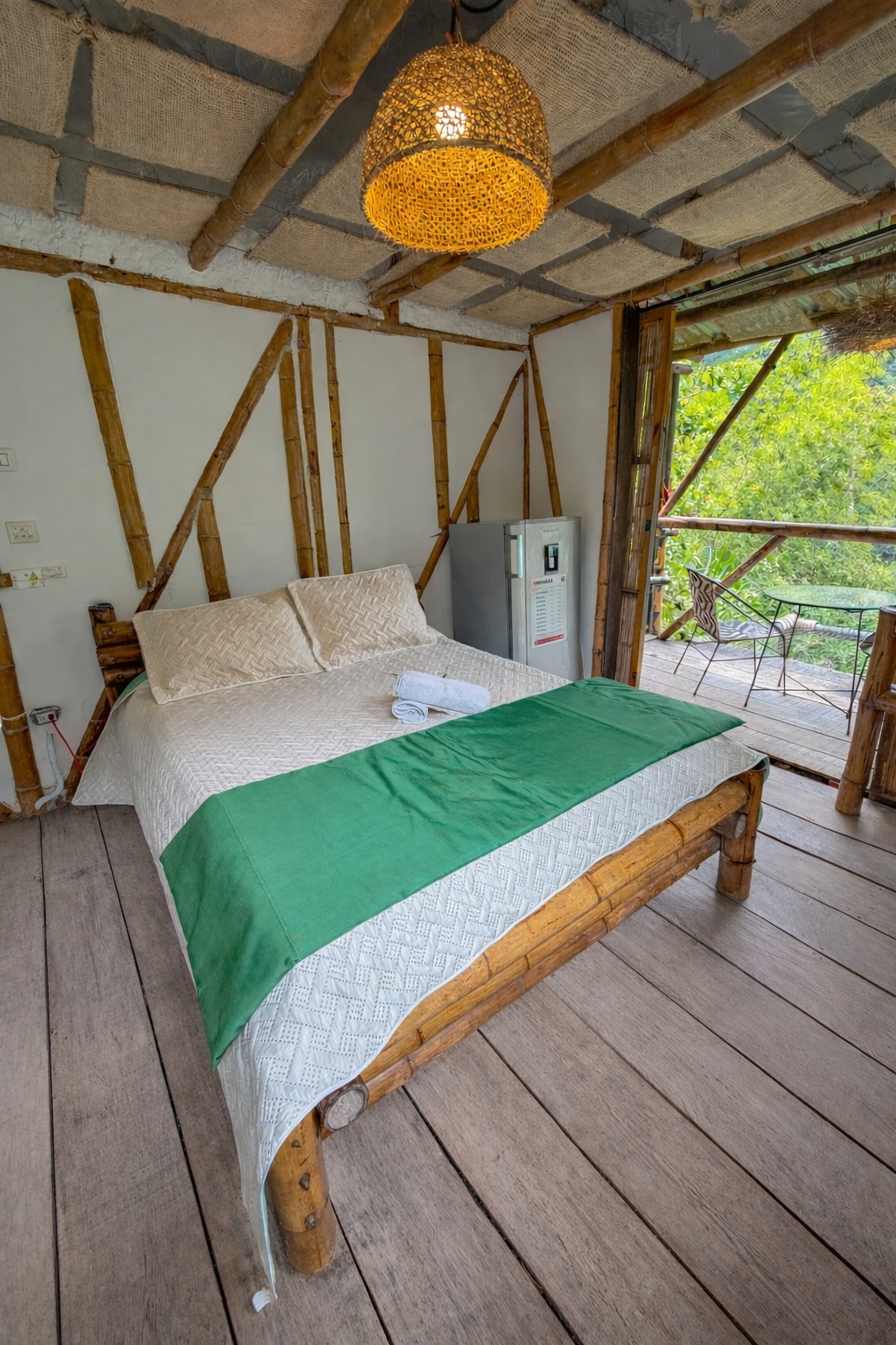 El Poema bambungalow hace honor al material centenario de la zona cafetera, el bamboo, también llamado el acero vegetal, usado en este alojamiento en estilo bungalow moldeando una espectacular y confortable habitación construida con grandes ventanales y una amplia terraza desde donde es posible apreciar la más espectacular vista del paisaje cultural cafetero. Ubicada en finca el poema.