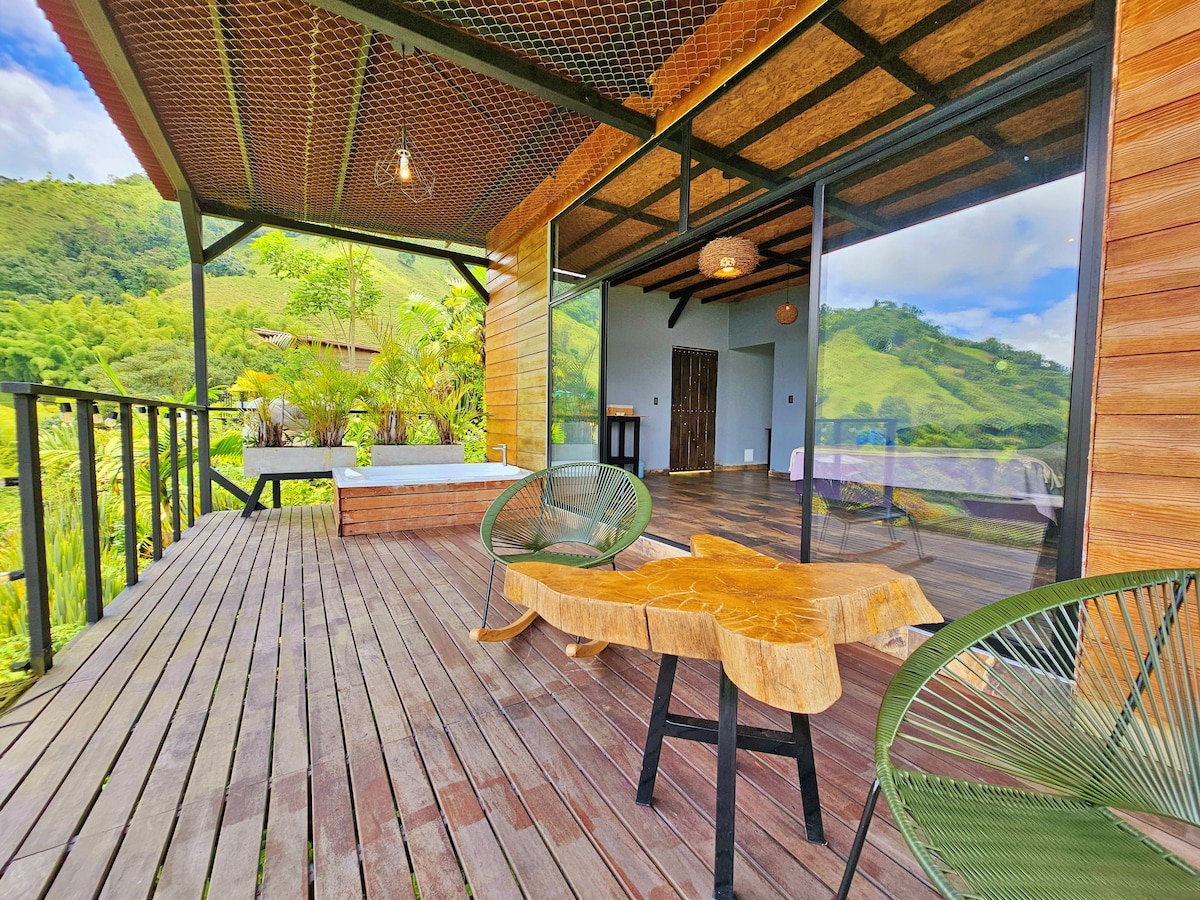Bacuru es toda una experiencia moderna de conexión Natural. El alojamiento por si mismo es una representación artística de una casa de árbol, ubicada en medio de un cultivo productivo de Banano y Café. Brinda todas las comodidades que puedas esperar en una estadía de alto nivel de confort: Jacuzzi, BBQ, Jardín exótico con zona de fogata. Un área total de 150 metros cuadrados en total convivencia con Aves, vegetación y una vista impactante del paisaje cultural cafetero Colombiano.