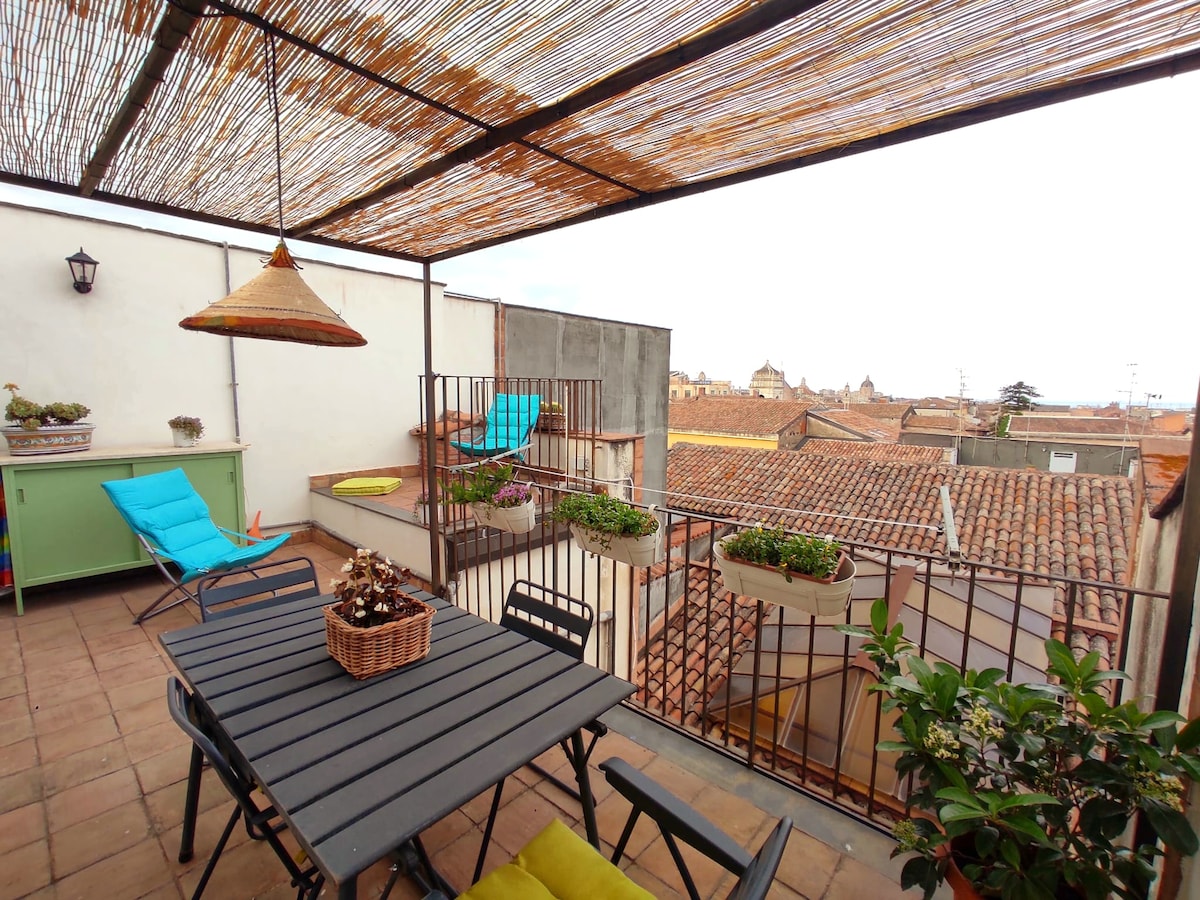 Casa Minè is a large and bright apartment in the historic centre of Catania, at a few steps from the Medieval Castle and Museum Castello Ursino. Recently renovated and furnished with attention to detail, Casa Minè has a private terrace with breathtaking view from the sea, the baroque domes of Catania to Mt Etna. As a guest, you are going to enjoy two huge double bedrooms, a comfortable living room with open kitchen, a modern bathroom, baby room and exclusive access to the rooftop terrrace.