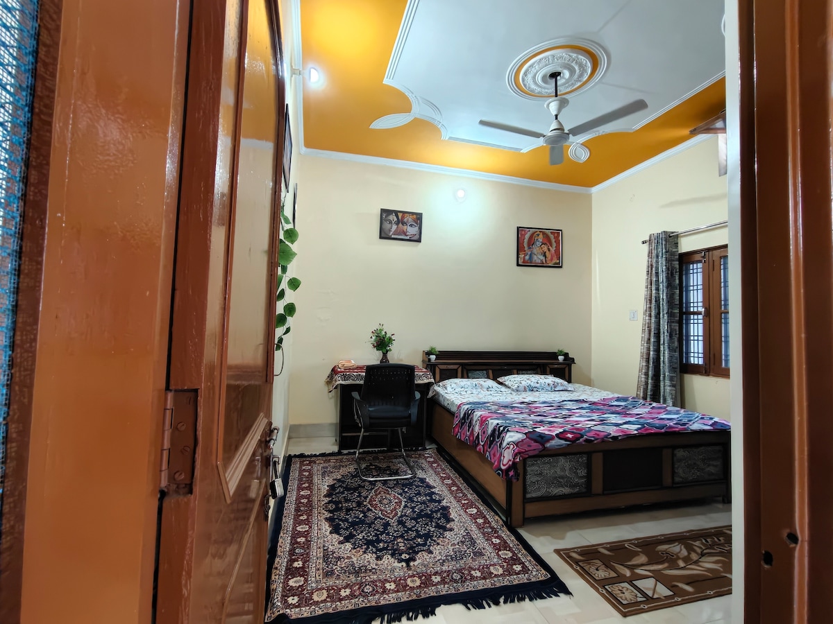 *** SPECIAL: FREE DAILY HOME-COOKED BREAKFAST & FREE WIFI This is a private bedroom with dedicated kitchen and bathroom right outside the bedroom, just 6min drive from AIIMS. You also have access to a bright balcony and rooftop full of plants and home-grown veggies by our family in a quiet, peaceful Rishikesh neighborhood of authentic local vibe. Feel at home in the warmth of a family away from home when staying with us! * Laundry available for extra fee * Cooler provided in summer, no AC